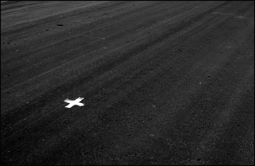 Х - знак бедствия. На фоне раскатанной в блин пашни (во всяком случае, мне видится именно утрамбованная пашня) - глубоко философский образ...