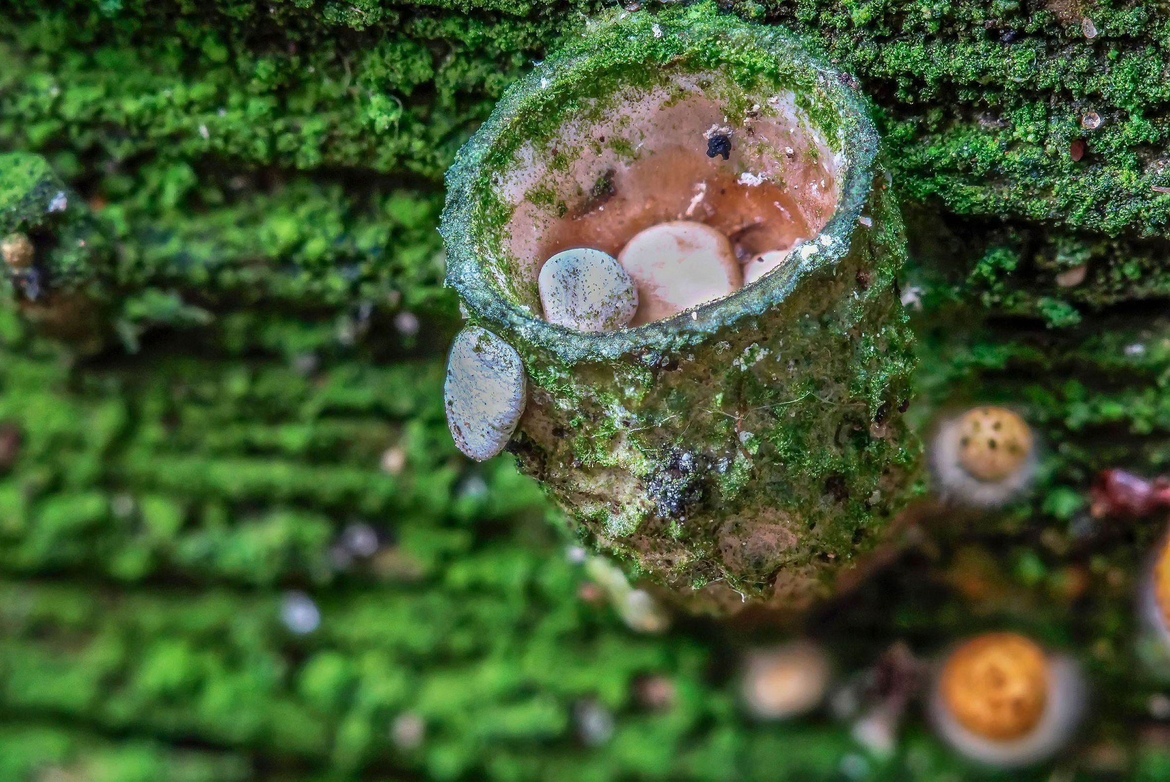 Бокальчик гладкий это маленький ксилотрофный гриб широко распространён на гниющей древесине. У него необычное морфологическое развитие плодовых тел. Сначала образуются маленькие плодовые тела с жёлтой шапочкой, а потом формируется бокальчик в котором лежат белые кассеты, содержащие споры. Кассеты разбиваются каплями дождя и споры разбрасываются.