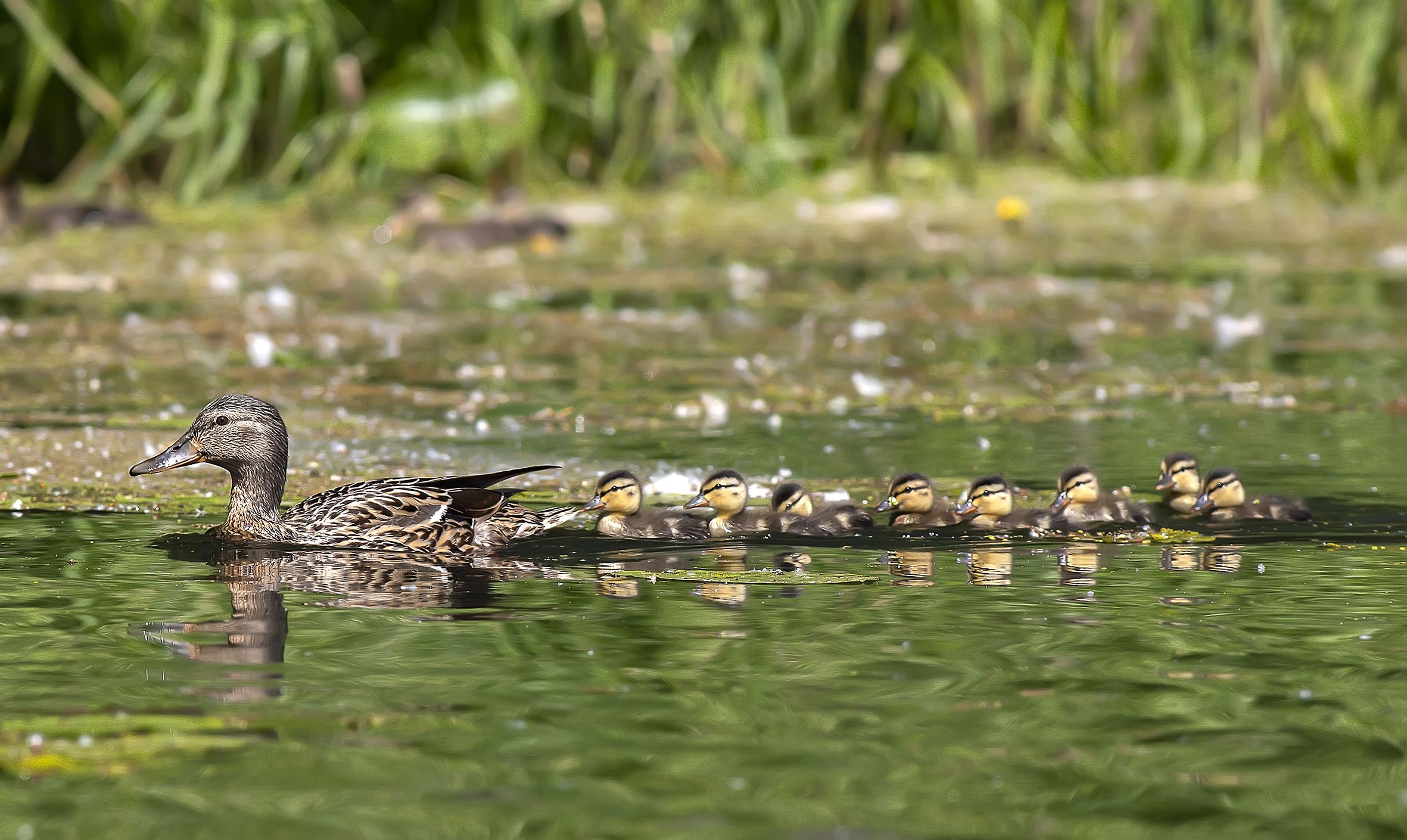 водоплавающие, птицы, утята, кряква, утка, выводок, Широких Александр