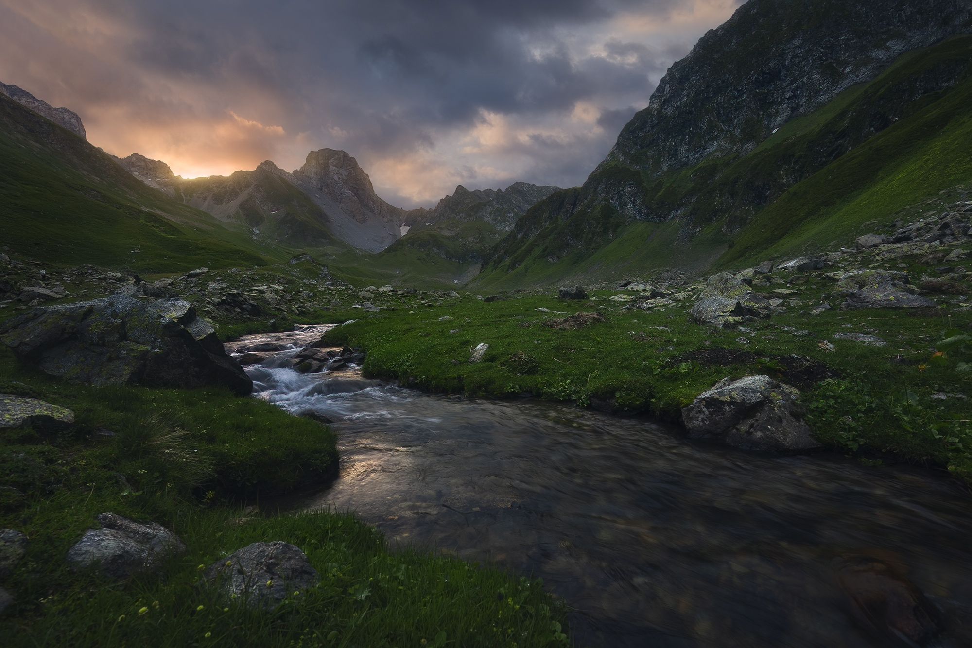 горы, закат, пейзаж, кавказ, загеданка, загедан, карачаево-черкесия, река, Александр Дударев