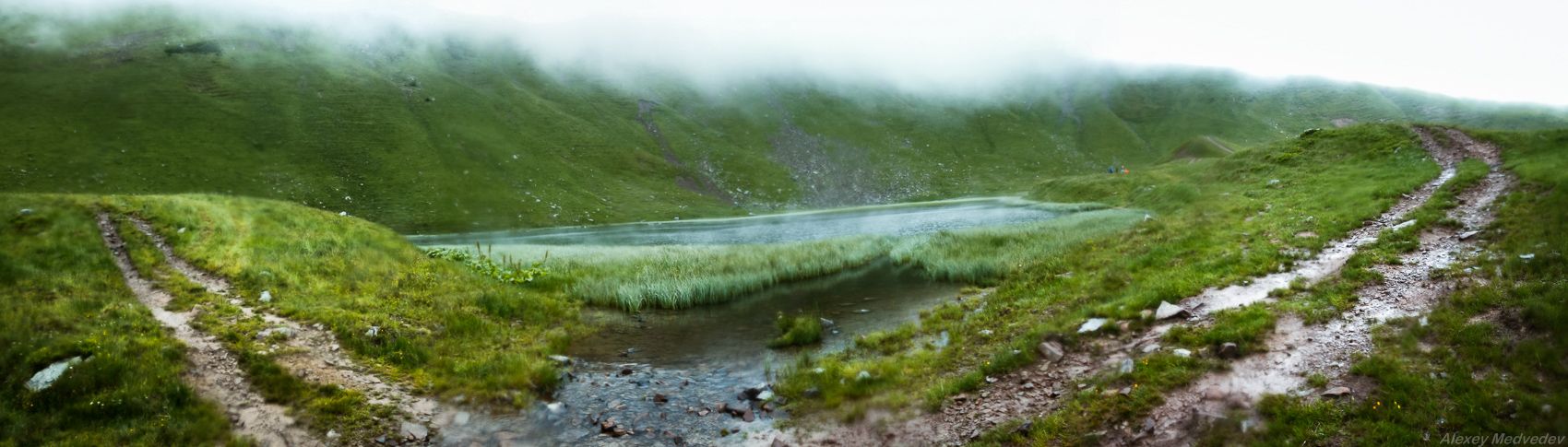 Украина, Свидовецкий хребет, Спуск к горному озеру Догяска. фантастическое зрелище! зависшее в нескольких метрах над головой облако так и намекает: "а ну ка подпрыгни,зацепись" :)