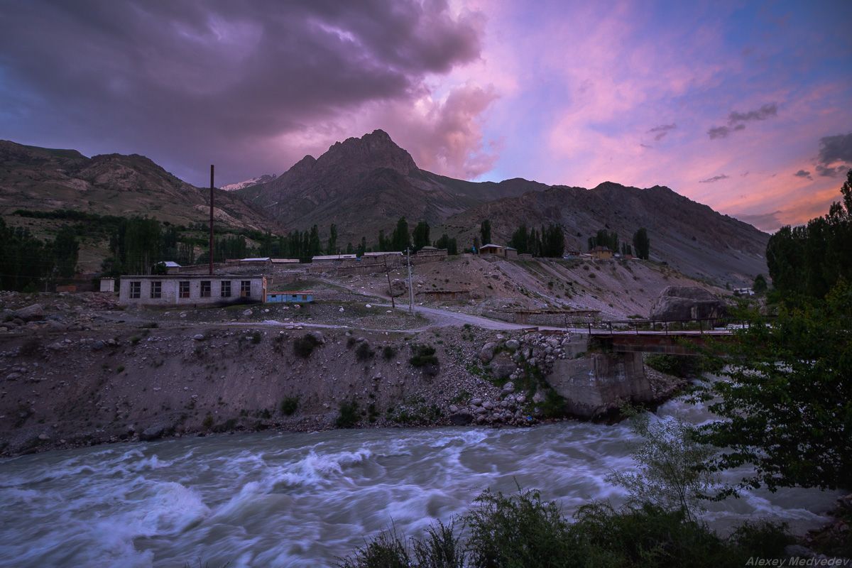 Проходя кишлак Дижик в сумерках нас обнаружили мужики на лавке. А узнав что мы с Украины очень обрадовались. Оказалось они спорили меж собой откуда мы, и один другому утверждал что мы украинцы, и выиграл. Пошел купил колбасы в магазине и повел на чай. Таджика друзья называли Жора-Хохол. Он, 30 лет живущий в Украине, имеет 2 жены(в Украине и Таджикистане) и 3 детей. Много чем занимался и дома а потом и в Украине: "Всю жизнь я наёбывал людей на базаре, и считаю что жизнь удалась" - потягиваясь и глядя с улыбкой в окно говорил Жора. На лето любит приезжать на родину. С собой он дал нам остаток колбасы и 2 больших лепешки, твердостью не уступавших дереву. К позднему вечеру нас довезли до Зеравшана. отсюда уже прямая дорога в Душанбе. Но водитель сворачивал в другую сторону и не получалось у него вписаться. Что ж, привычно ставим палатку на пыльной уже обочине. После гор тут уже жара-духота. В предвкушении завтрашней цивилизации в столице.