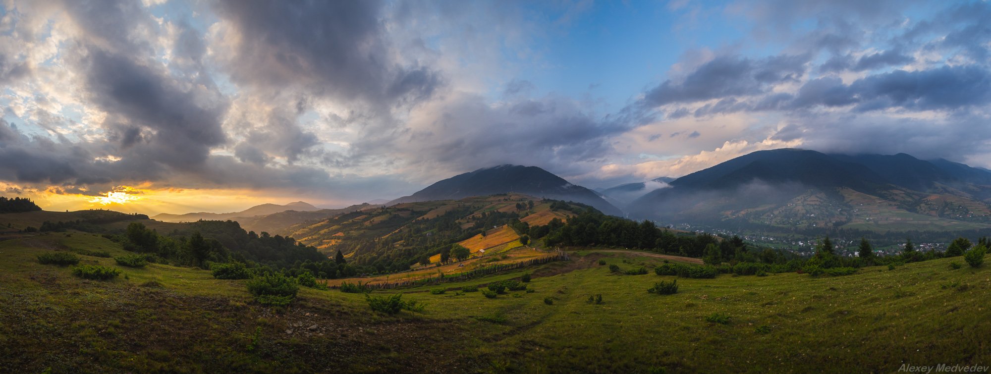 горы, закат, Карпаты, облака, свет, панорама,, Алексей Медведев