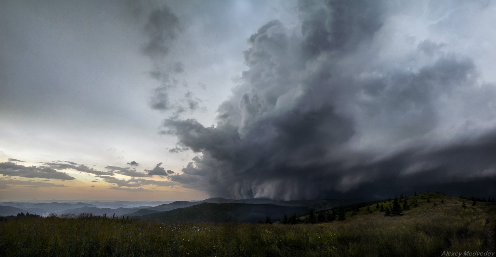 Карпаты. Пневе. прогуливаясь вечером по хребту с одним лишь фотиком в легком дождевике, я не заметил как с румынской стороны (до границы здесь около 10км) подкрался грозовой фронт ..