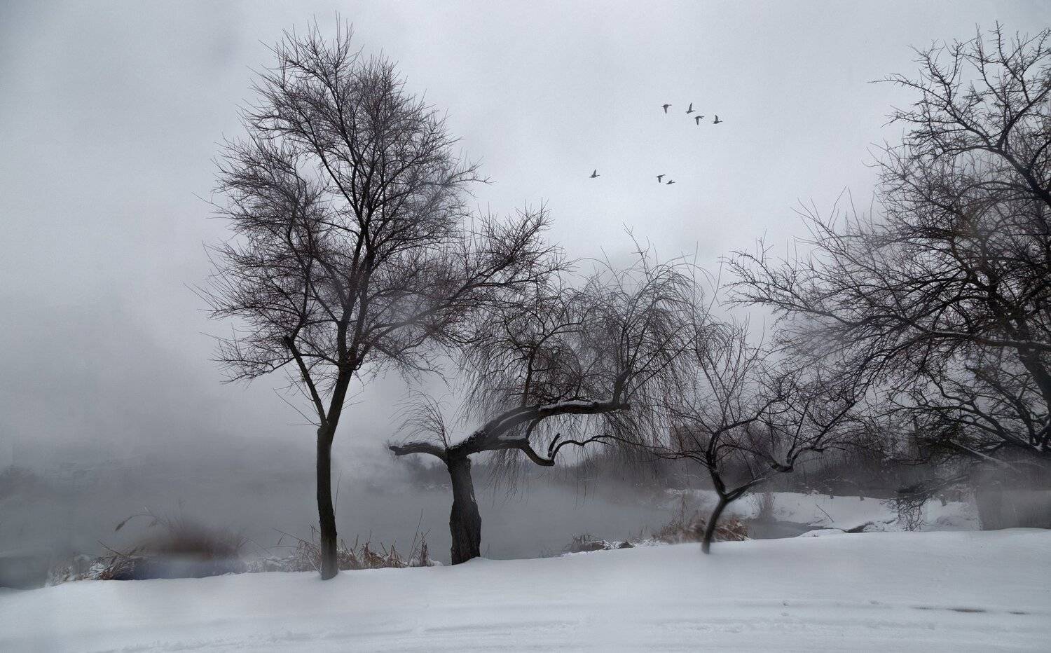 Это хорошо или плохо? Обработки практически нет, перевод в ч/б мало изменил оригинал. Снег рано утром дает синеву, это не лучше, чем серый оттенок.оригинал -http://photographers.ua/photo/zima-958764/