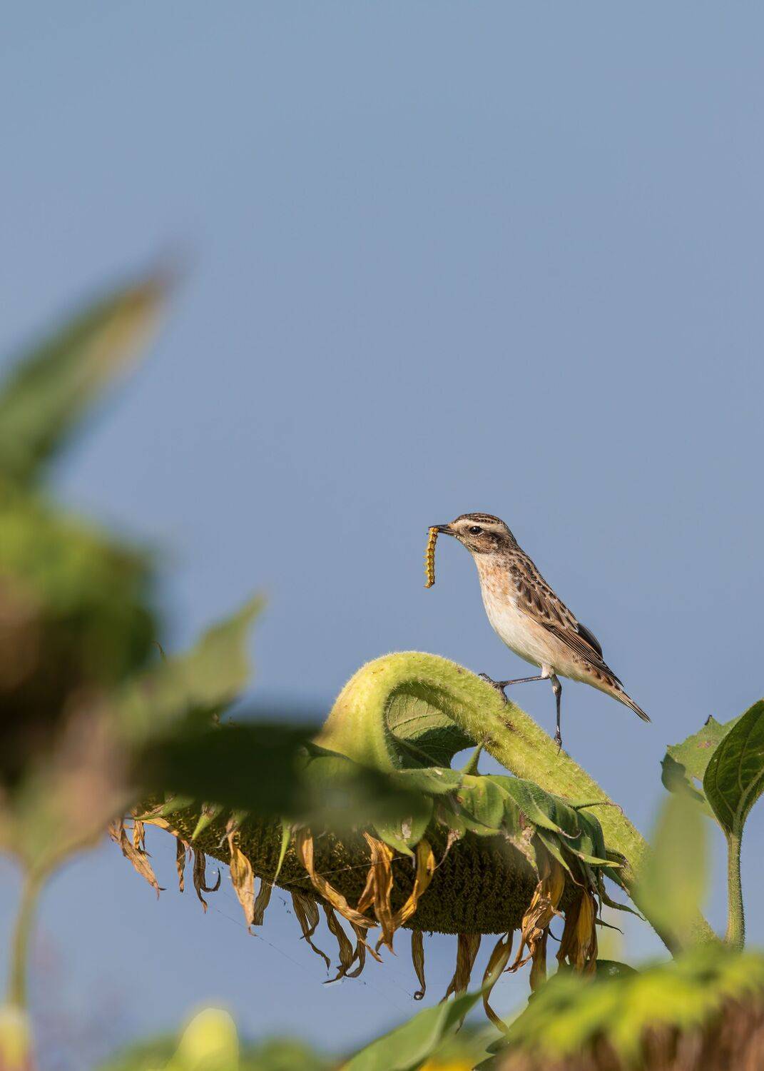 Луговой чекан.Это короткохвостая птица, передвигающаяся по земле небольшими быстрыми прыжками, часто покачивающаяся и взмахивающая крыльями и хвостом. Луговой чекан размером около 13—14 см и весом около 15—20 г. Окрас верха бурый, с чёрными пестринами, брюхо белёсое. Горло и грудка окрашены в оранжево-жёлтый цвет.
