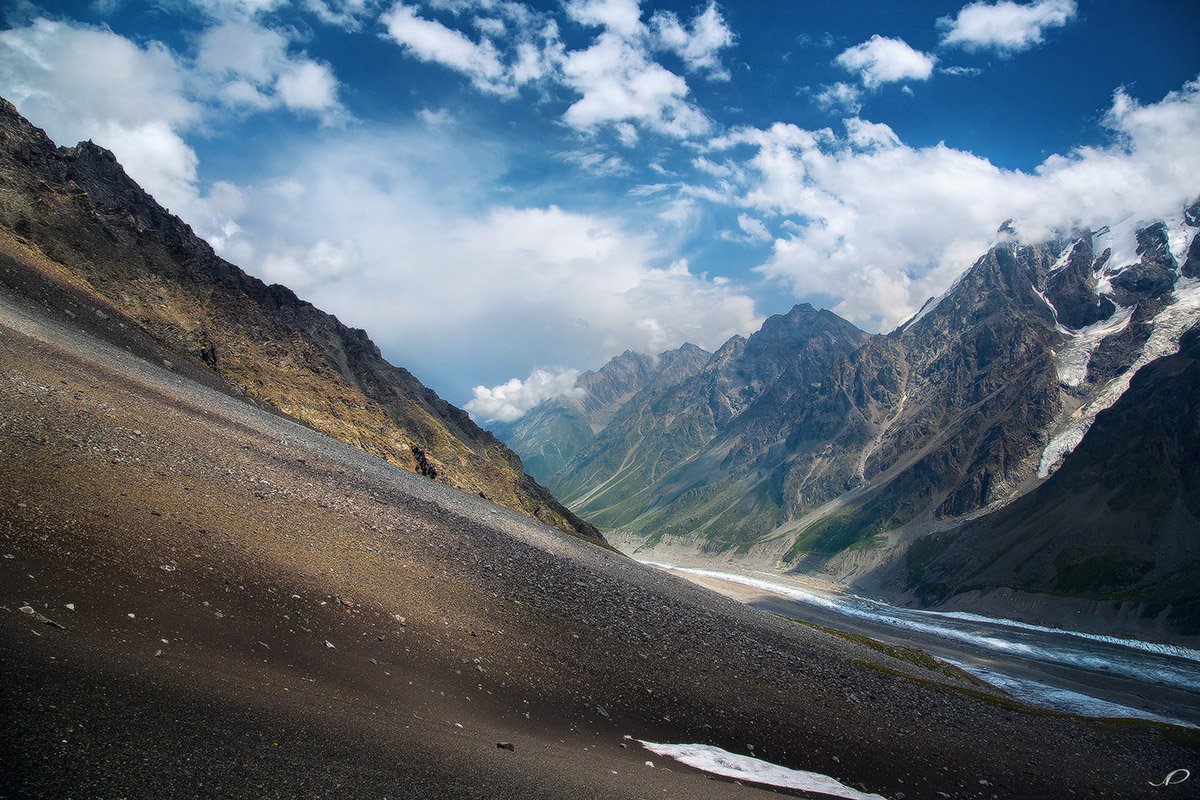 перевал. горы. ледник. снег, облака. небо, осыпь, Алексей Ретюнских