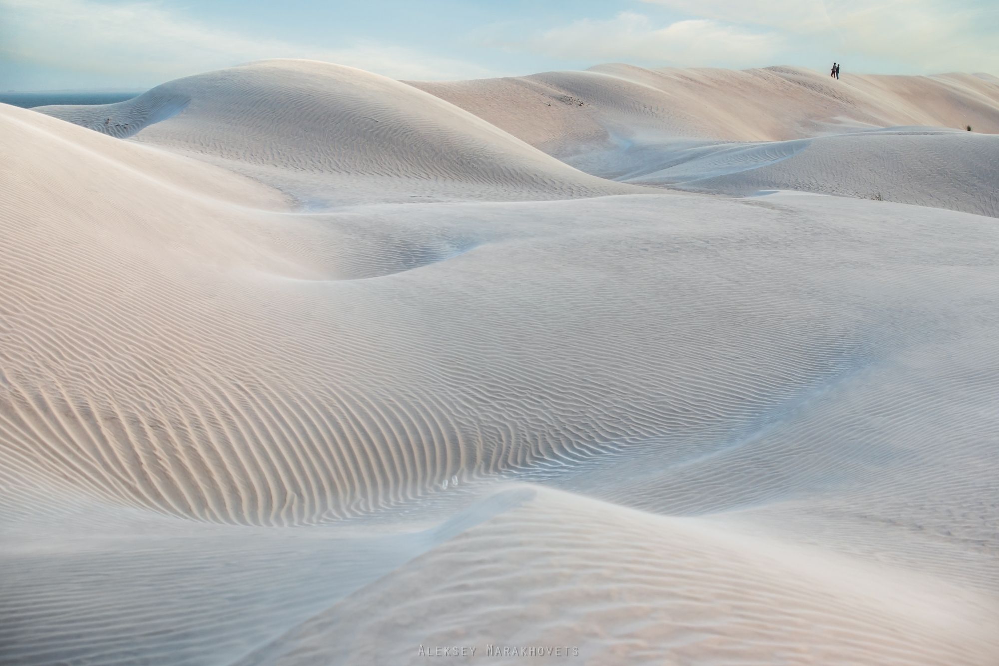 В 400 км от Маската есть небольшая рыбацкая деревушка Аль-Халуф. Если проехать за неё ещё 10 километров по широкому пляжу, то отказываешься в совершенно неземном месте среди необычных белоснежных песчаных дюн, которые называют Сахарными. Действительно, возникает ощущение, что ты превратился в маленького муравья, который заполз в открытый мешок с сахаром. Белый песок слепит глаза, в полдень смотреть на него просто невозможно! При этом он совершенно не нагревается.