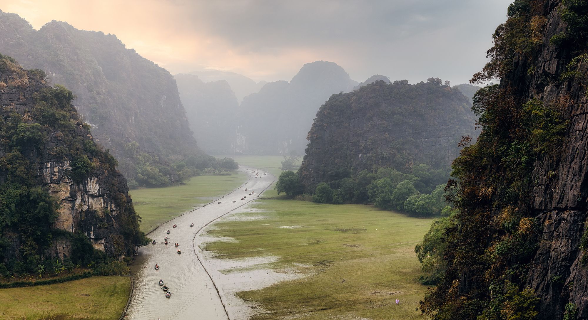 Район Тамкок в провинции Ниньбинь называют «бухтой Халонг на суше». Река Нгозянг затопила низменности этих мест, создав благоприятные условия для выращивания риса. Огибая величественные горы-трюфели словно из «Аватара», она образует широкую многополосную дорогу, по которой снуют маленькие прогулочные лодочки. Неутомимые гребцы проходят этот путь по несколько раз в день, показывая туристам сквозные пещеры. В одном из мест есть секретная обзорная площадка, о которой гребцы не рассказывают, чтобы сэкономить своё время. Однако, если о ней знать и попросить там остановиться, то можно полюбоваться чудесным видом на долину реки.