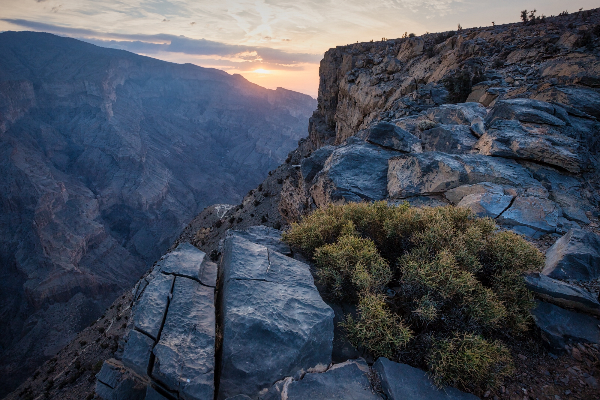 Каньон Джебель Шамс очень похож на Сулакский в Дагестане, только без большой воды внизу. Его глубина около километра, что ставит Джебель Шамс в один ряд с самыми глубокими каньонами мира. Его верхний край потихоньку обрушается, образуя своеобразный выступ-балкон. По этому выступу проложен популярный маршрут W6, протяжённостью 4,5 км.