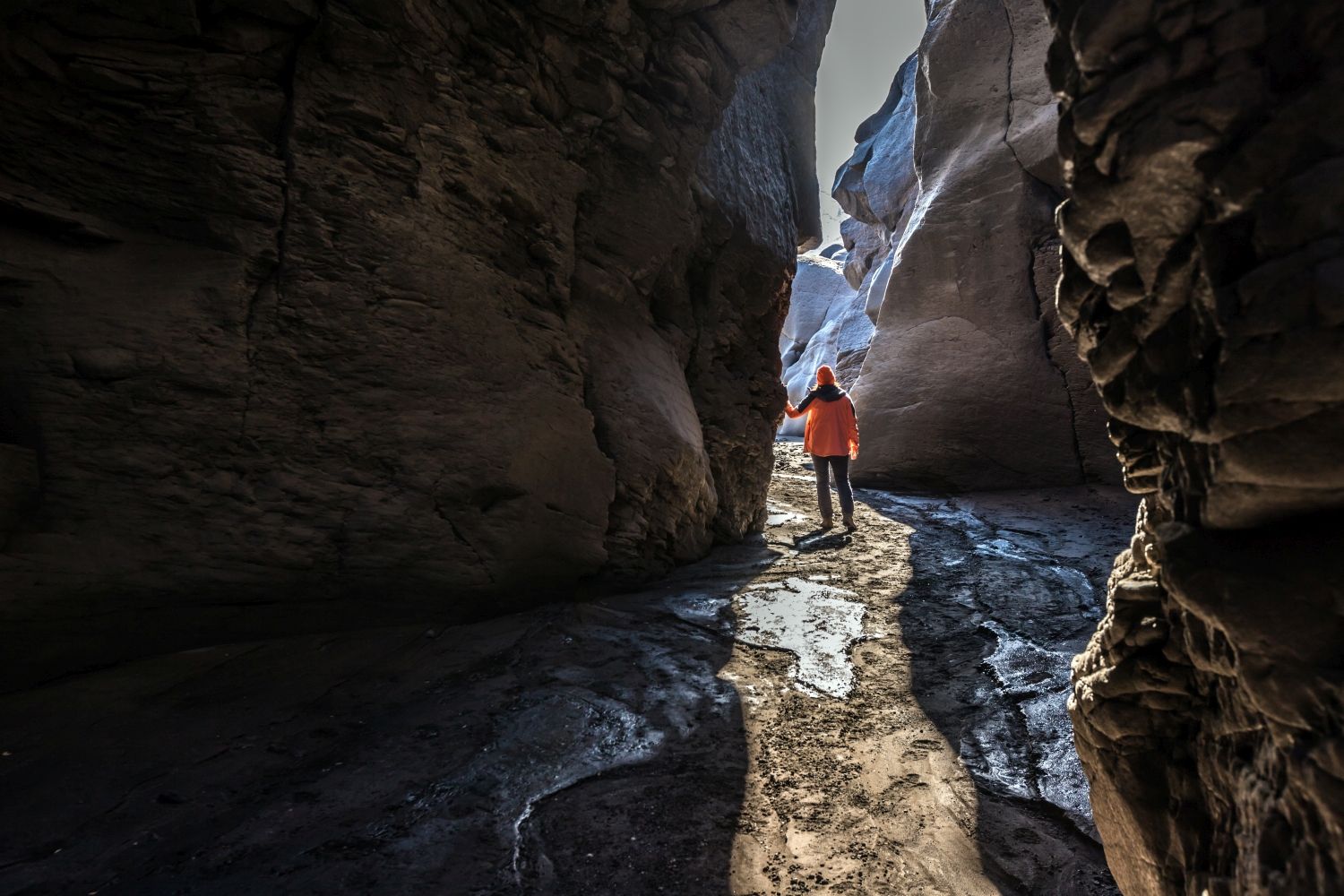 Под вулканом Толбачик в долине реки Студёная есть несколько каньонов, в которых в сухой сезон вода бывает только во второй половине дня. Утром же по ним можно спокойно гулять. Фотографии, которые можно сделать в каньоне, запросто подошли бы в качестве иллюстраций к фантастическому роману про исследование новых планет. Причудливый рельеф стенок каньона навевает мысль о его искусственном происхождении. Но это всего лишь работа бурного потока воды, который вымывает из нагромождений камней мягкий пепел от древних извержений огромного стратовулкана. Камчатка, сентябрь, 2021