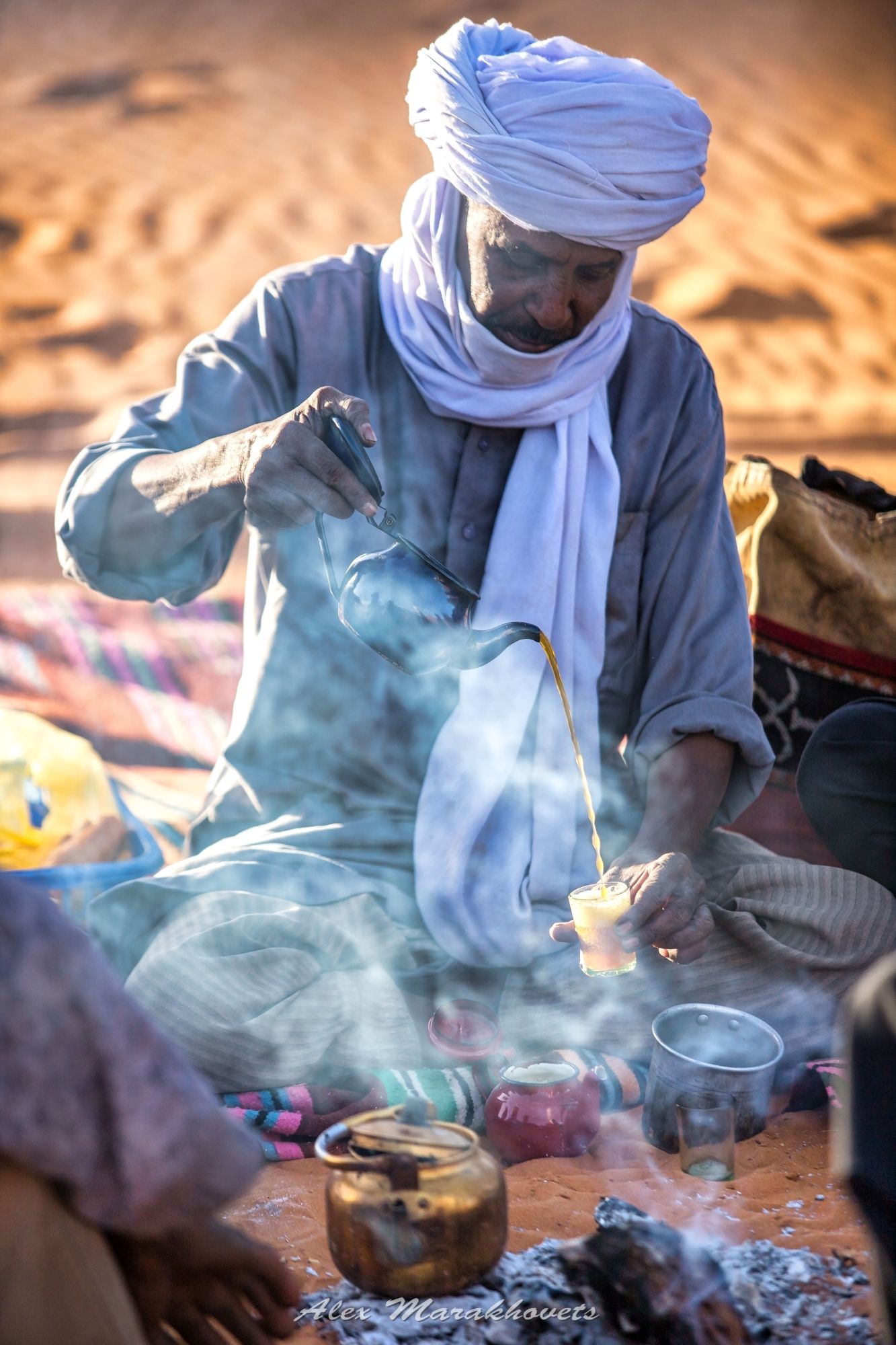 Неизменно в обед, ужин и на завтрак наши гиды-туареги приносили к нашему столу большой поднос с чаем. Напиток бодрящий, очень терпкий и сладкий. Уснуть после него сложно, поэтому вечерний чай отличается от утреннего составом трав и крепостью.
