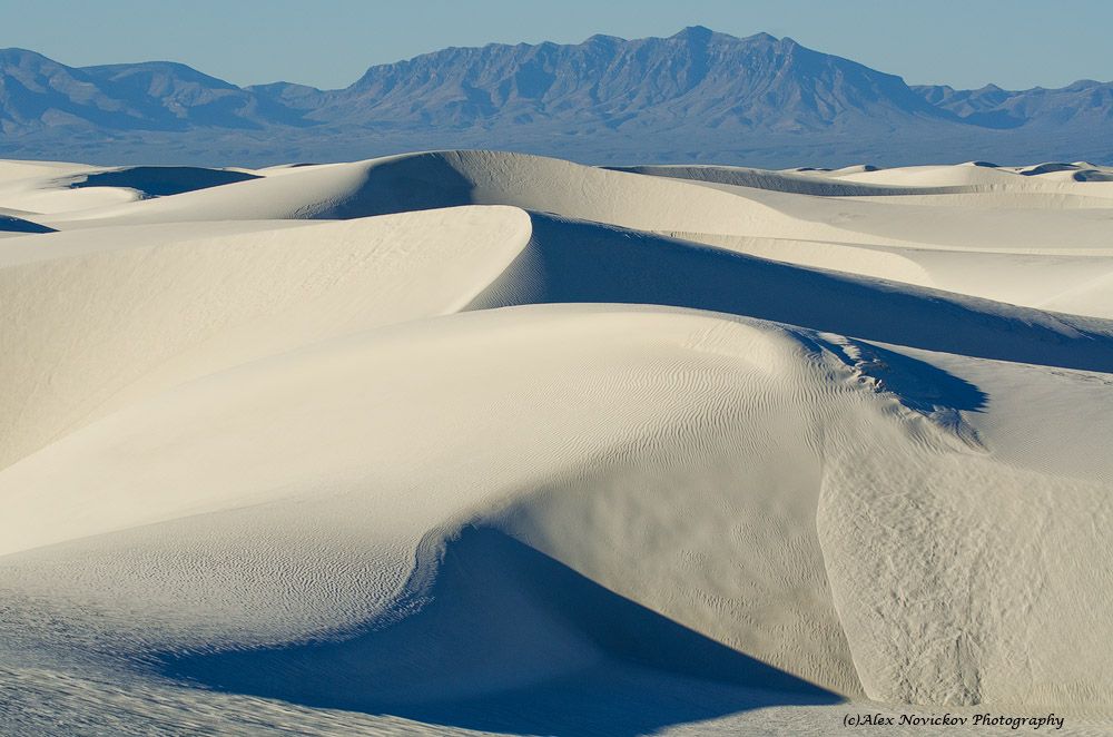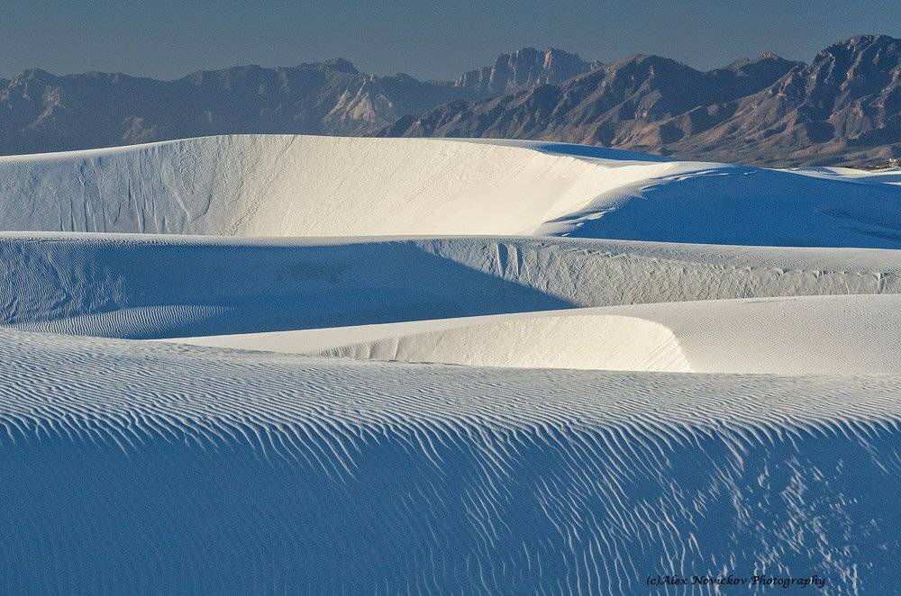 White Sands National Monument, Alamogordo, NM, USA. Вечер и утро в белых песках.