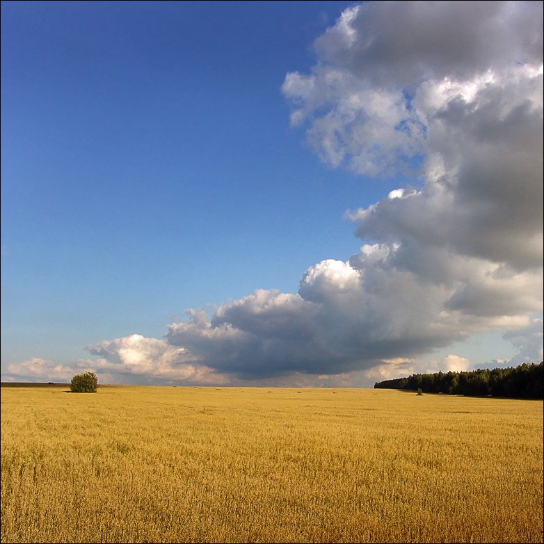 поле, лето, небо, куст, Тарасов Алексей
