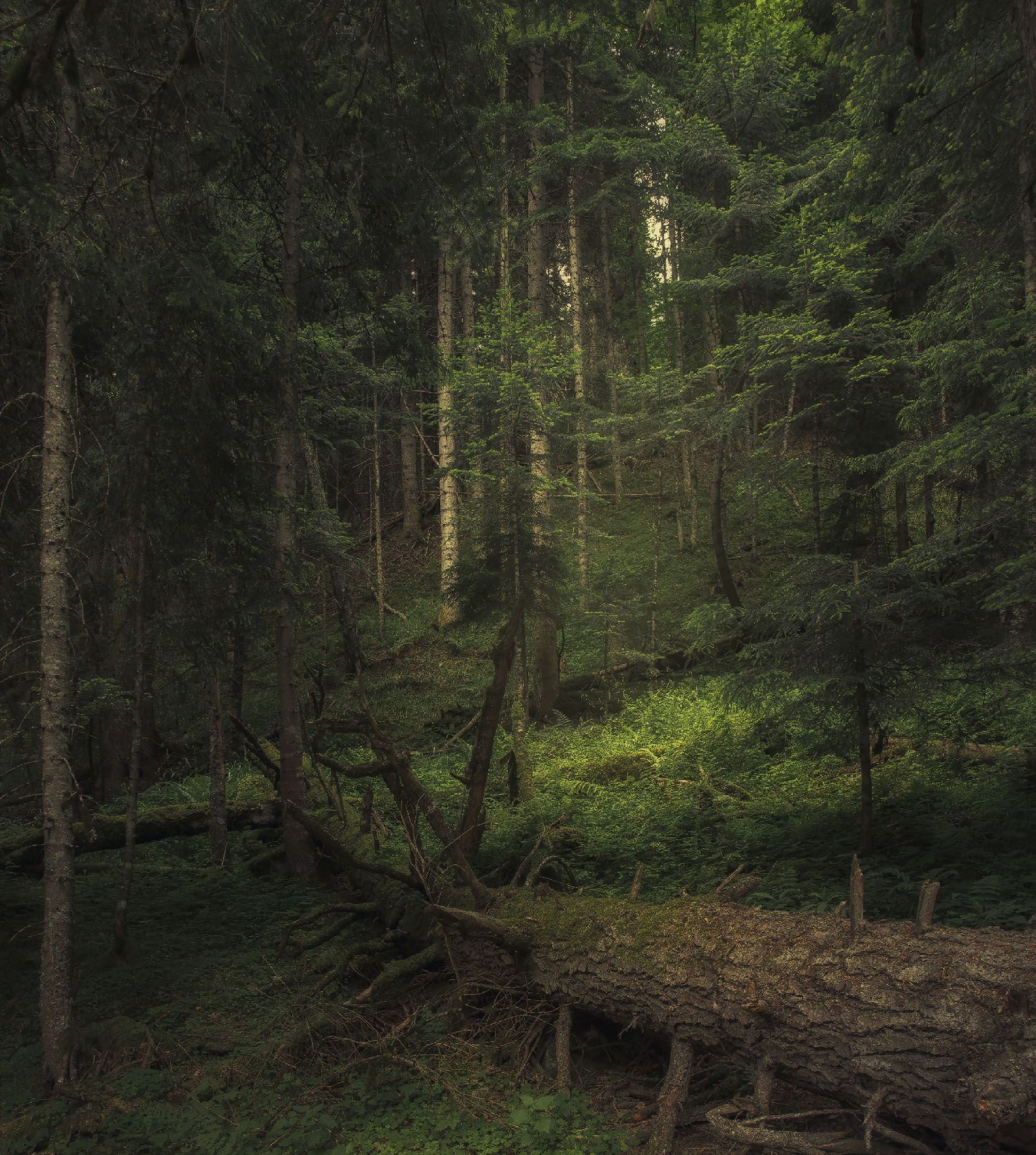 Тебердинский биосферный заповедник КЧР. Глухие леса, высокие деревья, буреломы - всё это окружает в заповеднике. И только тоненький лучик света местами может пробиться сквозь чащу лесной кроны и осветить маленький кусочек земли, преобразив темную чащу.