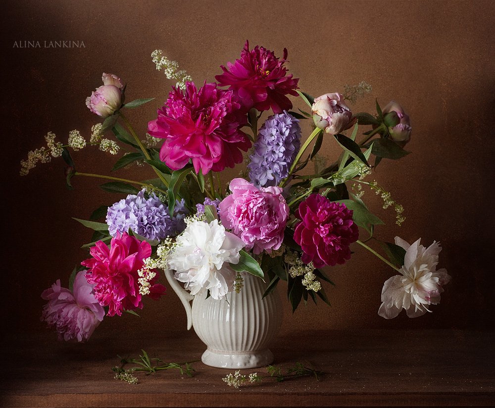 натюрморт, пионы, цветы, букет, кувшин, гиацинт, лето, Alina Lankina