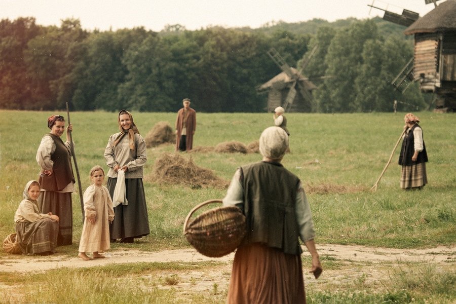 Илья, ты ведешь себя, как дурачки, которые пишут, что работы фотографа нет в съемках известных актеров и т.д., типа на кнопку нажать. Тебе никто не писал, что твоя работа это 30% фотографии, остальное костюм, грим и модель? Честно говоря, от тебя в принципе не ожидал такой хрени, но отвечу. Во-первых я официально был фотографом, за деньги. Помню, ты по этому поводу когда-то писал. Это к вопросу, что всё сделано за меня. Работа такая снимать рабочие моменты, а уж получаются или нет, это видно на фотографии. Конкретно к этой работе, я снимал бабушку этих девочек, которая спиной к нам с корзинкой, увидел интересный момент с детьми, отправил бабушку к ним и позвал детишек, чтобы обернулись, собственно получилась сцена. Это не кадр из фильма и не репетиция и т.д. Люди действительно интересно одеты, но с каждым я работал в свободное от съемок время, в том числе выставлял по кадру и свету и если надо было, брал у светиков отражатели или просил включить для себя свет. Надеюсь, ты не ребенок и понимаешь разницу между постановкой для кадра и дефиле. Но даже при этом фотографии с показа мод бывают очень интересными, как и любые репортажные или жанровые фотографии. Смотри на фото и не забивай себе голову, как оно сделано - это вообще не твоя проблема. Либо есть момент, либо нет. Я оцениваю работы даже с мастер классов, в том числе и твоих, хотя и свет ставит не автор и всё остальное готово, но оно либо есть, либо нет.