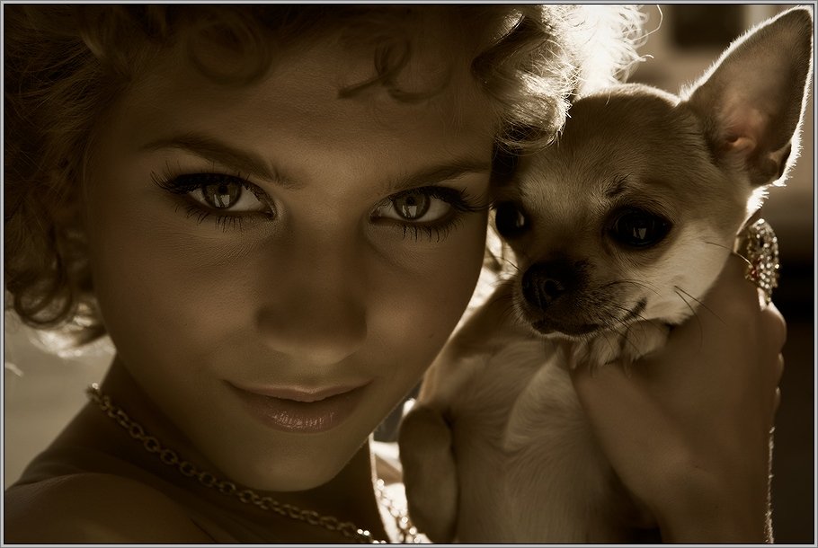 Ну почему же жалко, эмоционально как раз всё нормально. Девушке очень понравилась собачка и она попросила меня сфотографировать их вместе. Это вообще экспромт с куском пенопласта вместо отражателя :-)