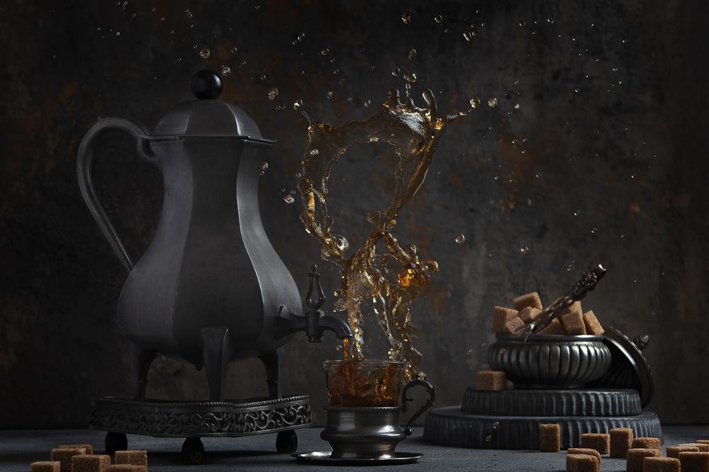 Оловянная винтажная посуда. Бульотка выполняет роль самовара, так как её ещё называют европейским самоваром. Сочетание серого цвета олова и золотисто-коричневого цвета сахара и чая - всегда восхитительно.