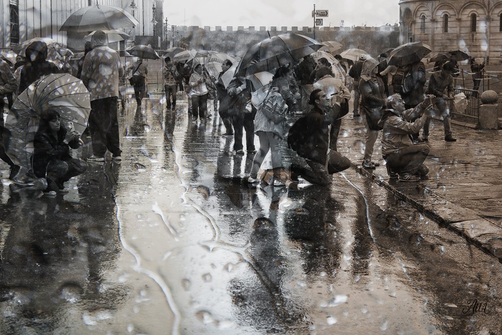 Дождь, Дорога, Зонты, Италия, Люди, Народ, Непогода, Пиза, Путешествие, Тротуар, Туристы, ALLA SOKOLOVA