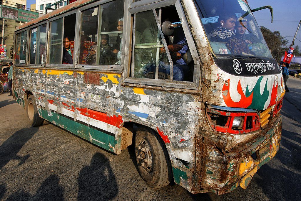 Для улучшения движения и поддержания порядка на дорогах стоят волонтёры с дубинками, которые со всей дури дубасят по проезжавшим автобусам. Поэтому очень сложно найти уцелевший автобус, тем более, чтобы протиснуться в пробке, автобусы не жалеют свои бока и скрежет слышится везде, а на автобусах просто нет живого места...