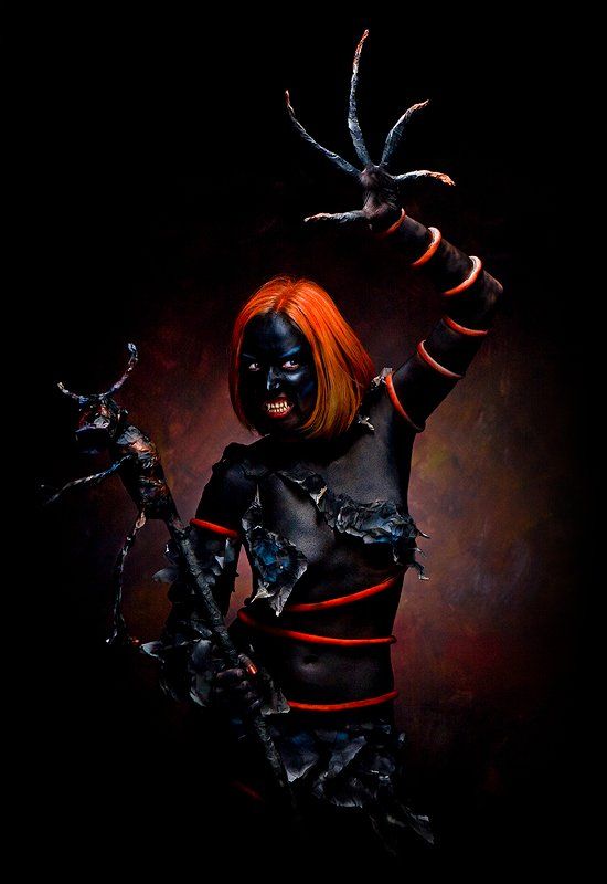 Видение, возникшее у Андрея Кейзина после распития баночки с непонятным содержимым. Магические пасы шамана (и по совместительству гримера) Дмитрия Торнова над обнаженным телом Екатерины Басовой материализовали это видение. Шаман ничего не пил, но видимо сильно надышался, как и я тоже. Для колдовства в качестве магических аксессуаров использовалась также мятая бумага, малярный скотч, утеплитель для окон и волшебные краски, которые закончилась в самый неподходящий момент. В студии происходили ужасные мистические явления. Откуда то из темноты то возникали, то исчезали головы абсолютно лишенные волос (покажу позднее), в полохах света были видны части тела, носящегося по студии с флешметром (тоже покажу), буквально из ниоткуда появлялись маленькие страшные чертикообразные существа (вероятнее всего также от магического действия этой баночки) . После неимоверных усилий и акробатических подвигов одного из этих существ удалось поймать и посадить на кол . С помощью такой приманки демона удалось заманить на съемочную площадку и сфотографировать для дальнейшего изучения демонологами. Свидетельство совместного помутнения нашего сознания и свою интерпретацию видения предоставляю на суд грозной общественности