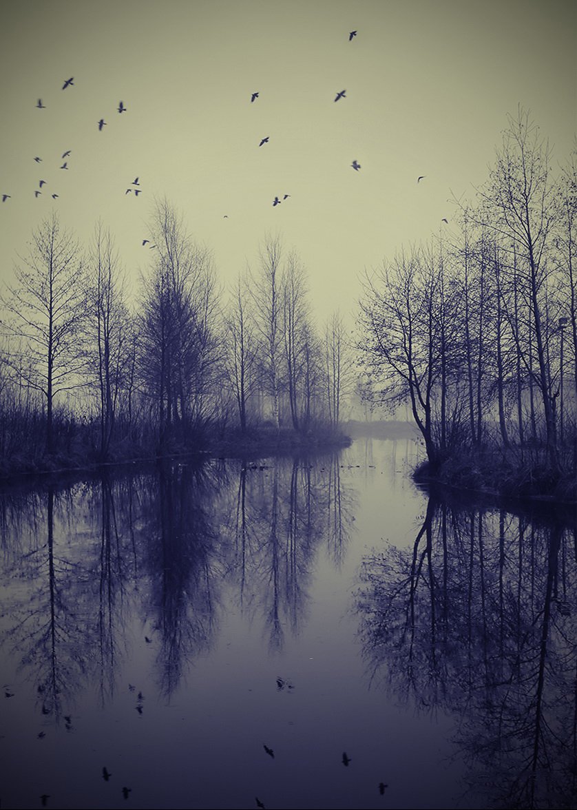 сестрорецкие болота,тонирование,туман,ветки,птицы,сюр, alexOmRam