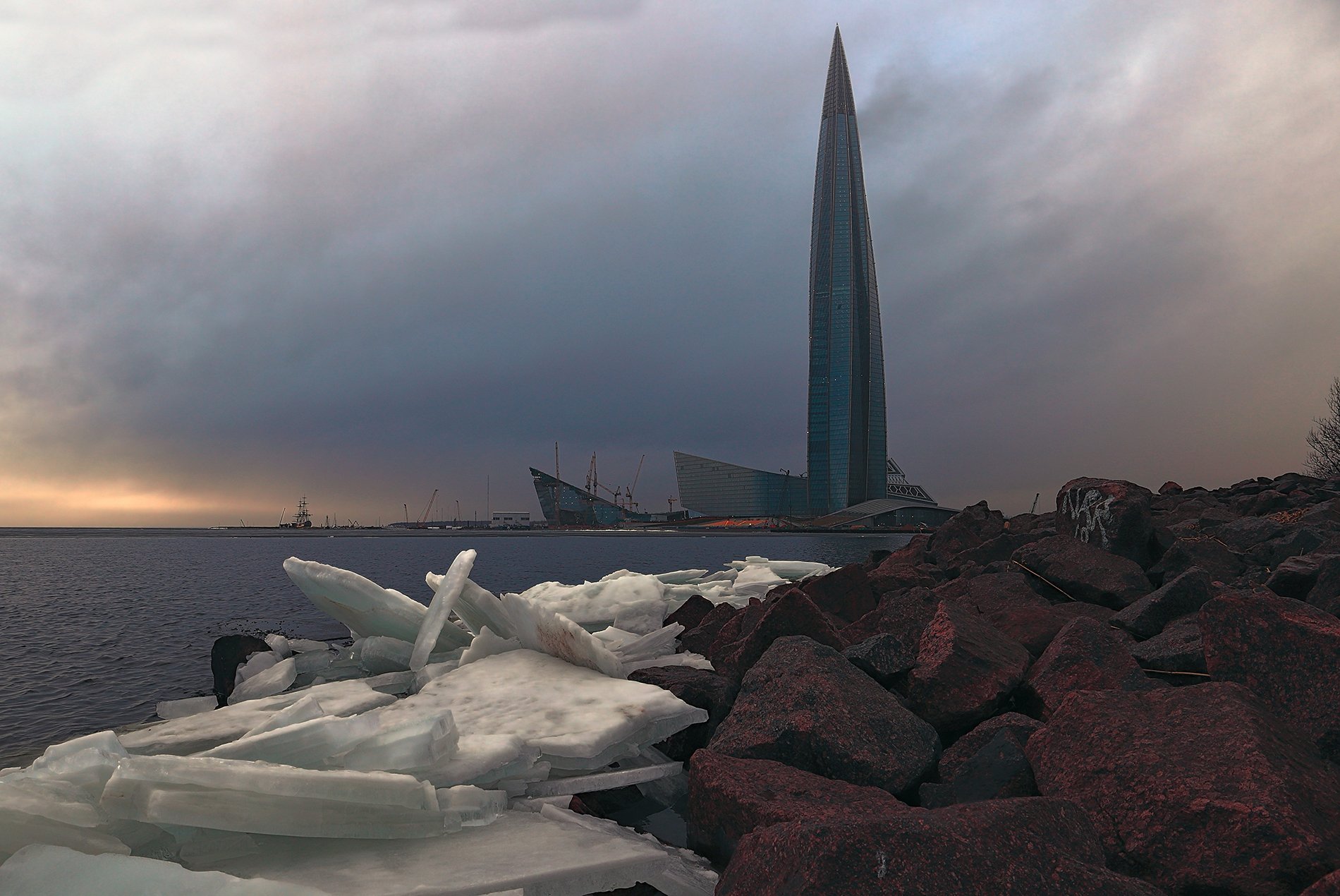 санкт-петербург,лахта-центр,лед,гранит,закат, alexOmRam