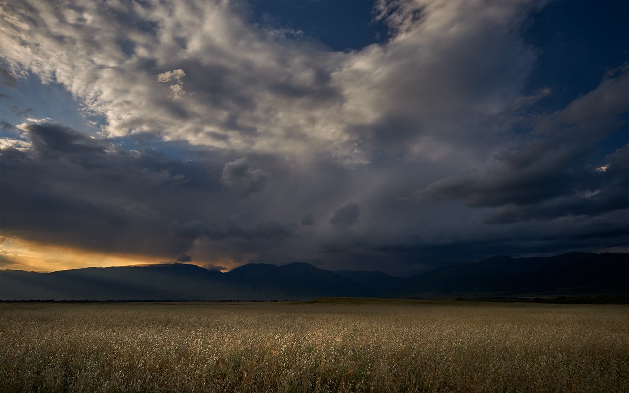 алтай, уймонская степь, теректинский хребет, дождевые облака, вечер, alos