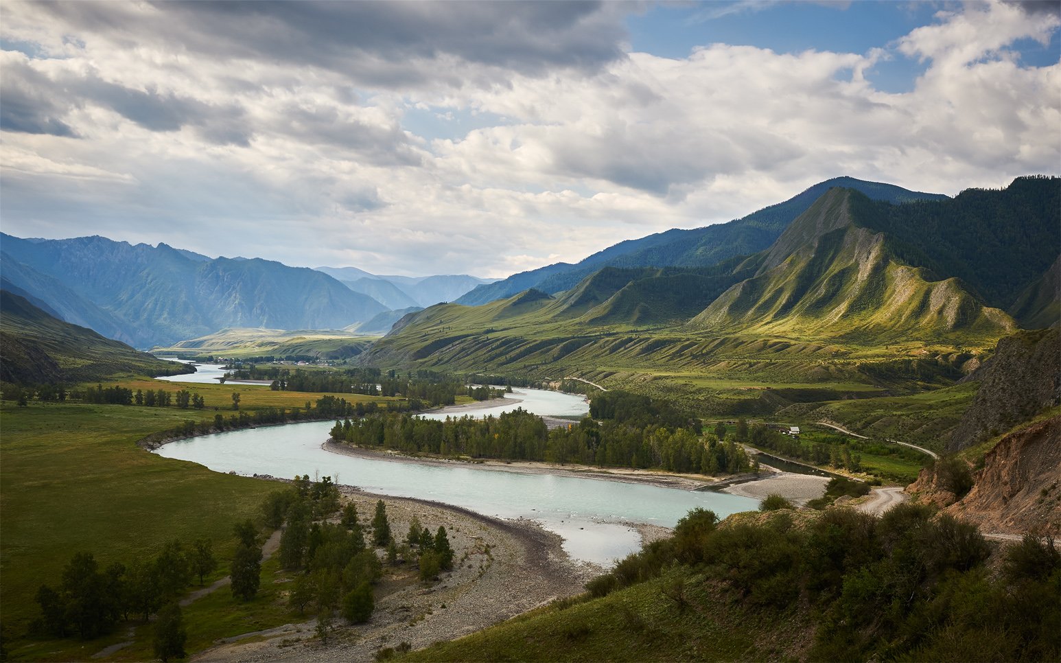 алтай, катунь, инегень, август, высокие террасы, меандры, дорога, alos