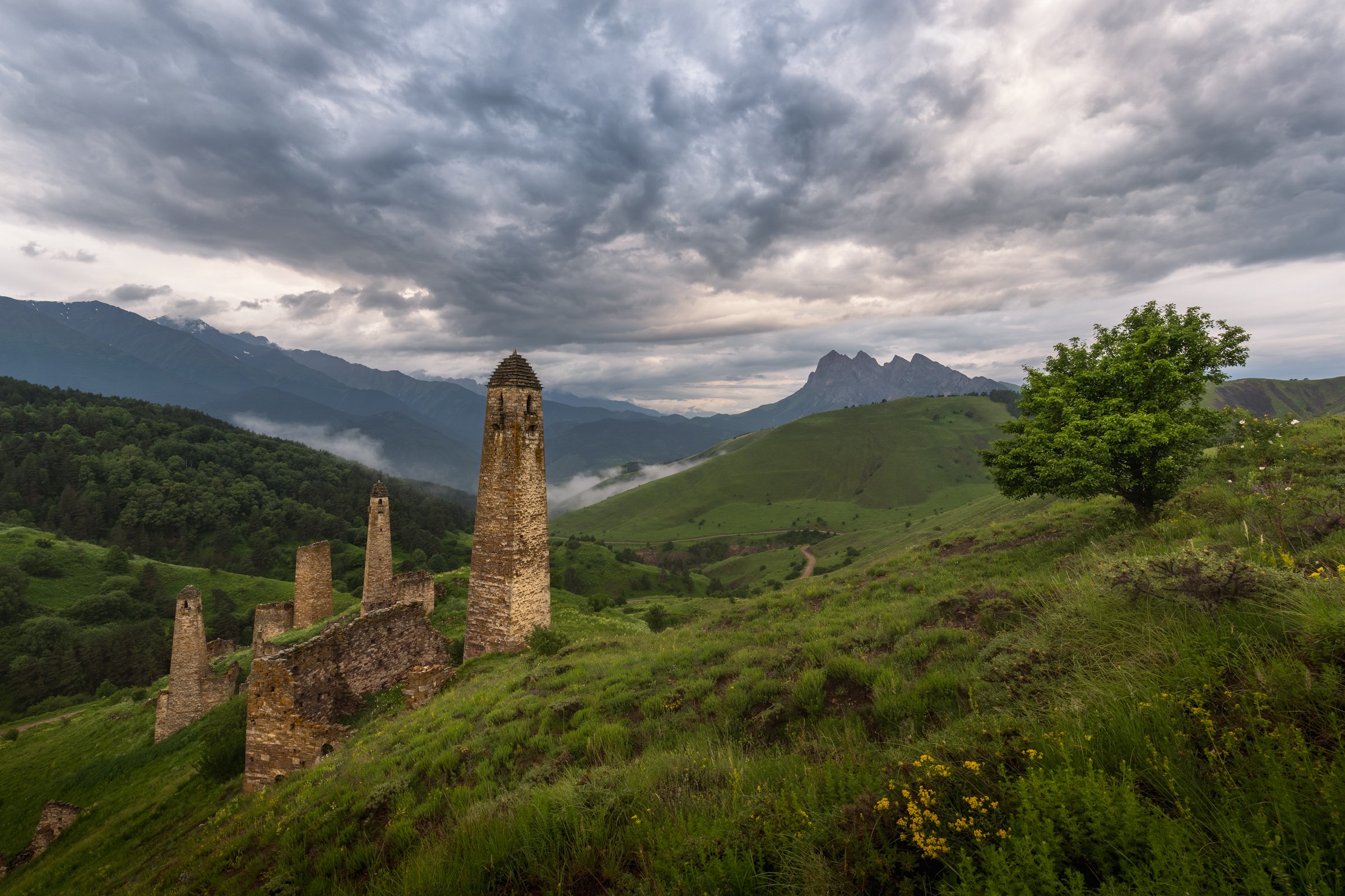 кавказ, горы, закат, солнце, небо, сергейалтушкин, дорога, россия, ингушетия, тучи, облака, Сергей Алтушкин