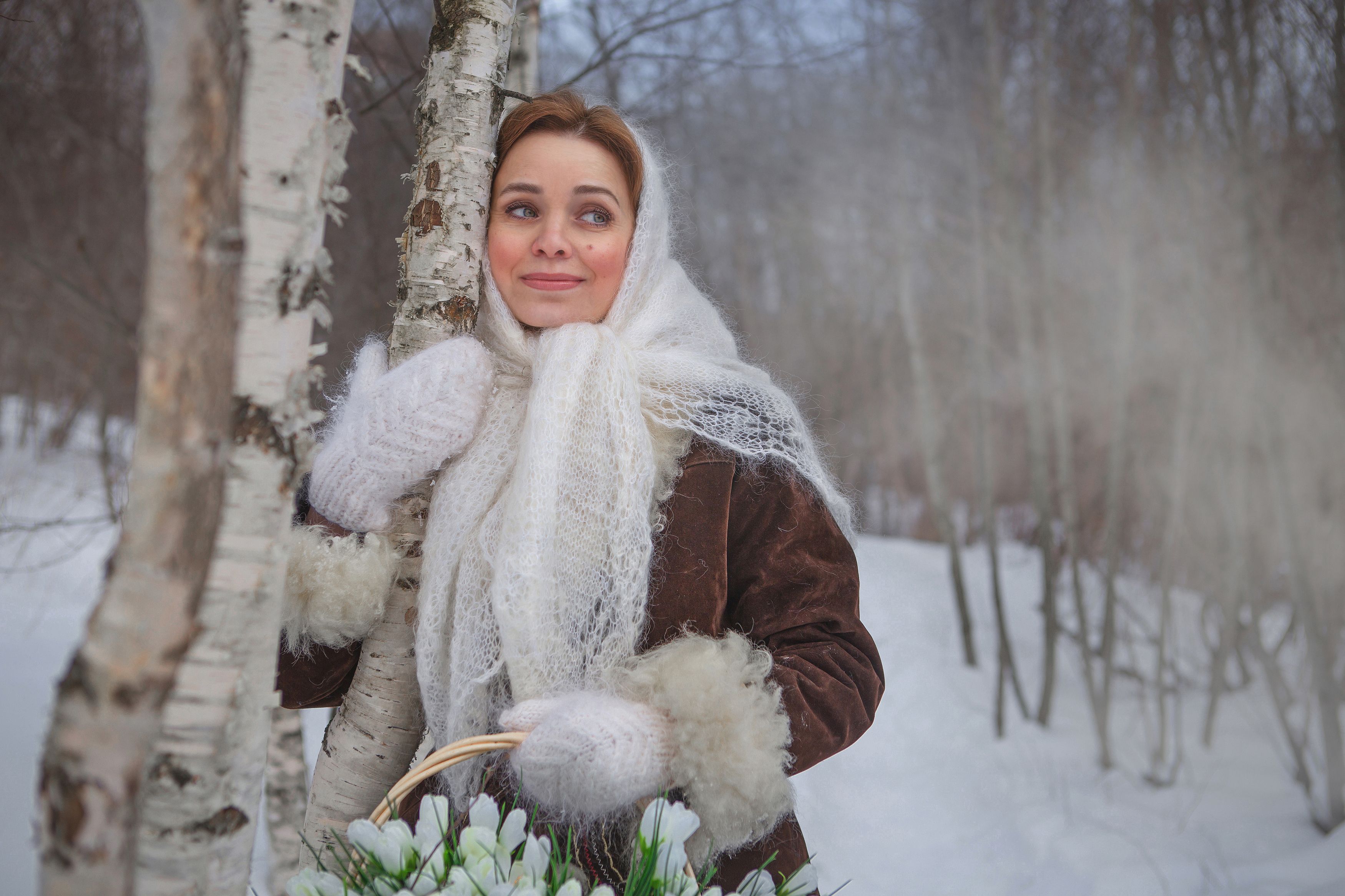 женщина зима природа красота любовь деревня лес снег лукошко платок рукавицы ручеёк фотография сказка, Татьяна Шепелева