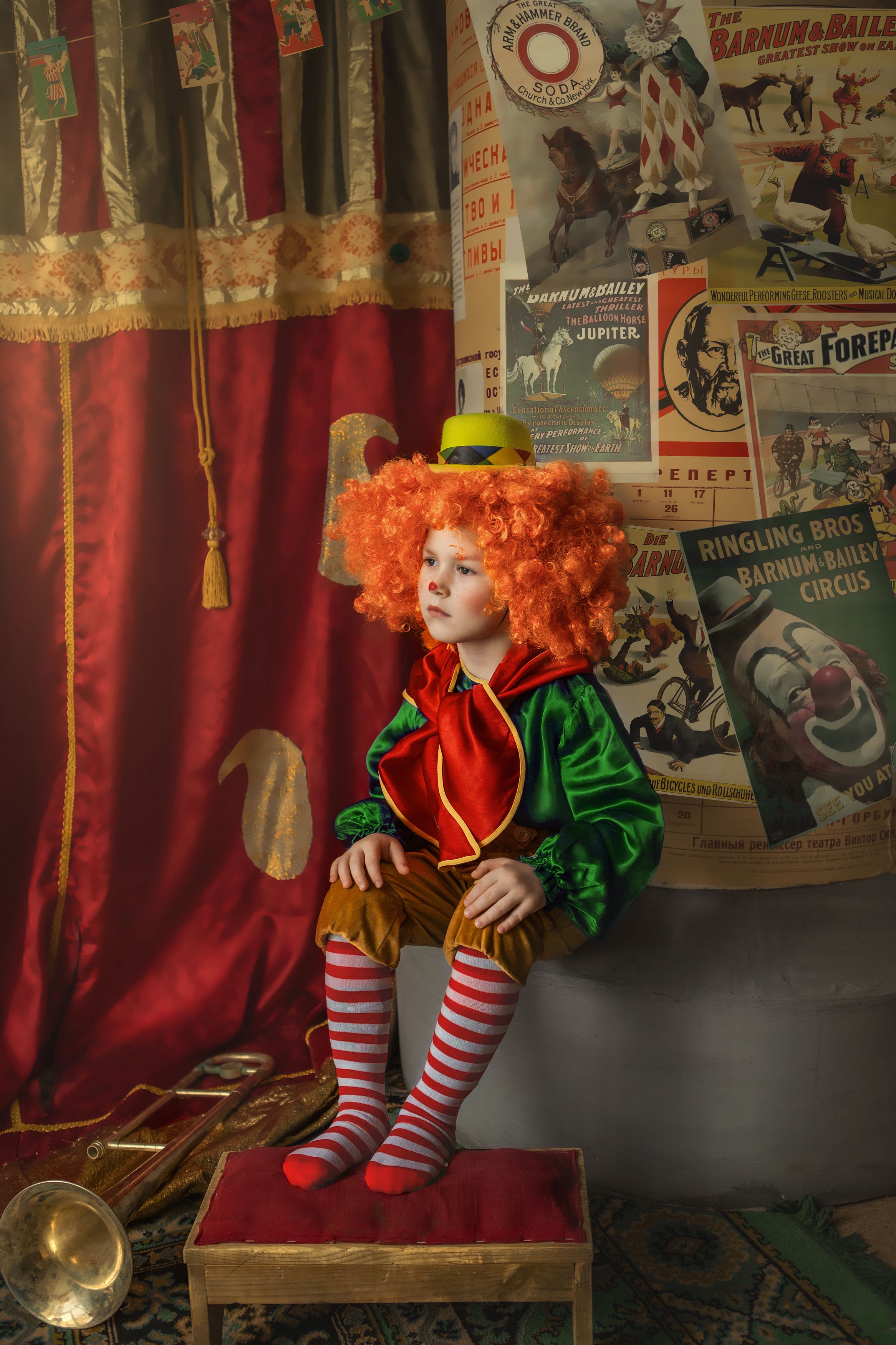 цирк дети клоун сцена фотосессия представление сказка тромбон радость смех, Татьяна Шепелева