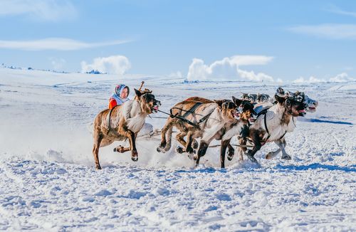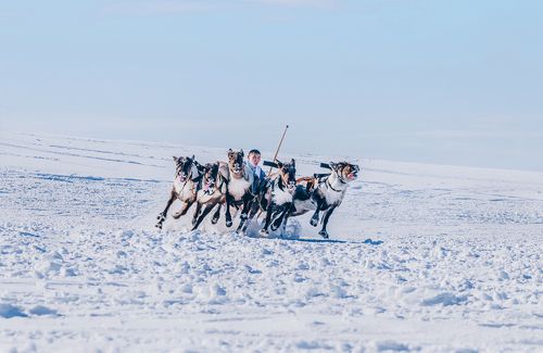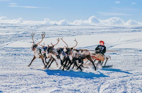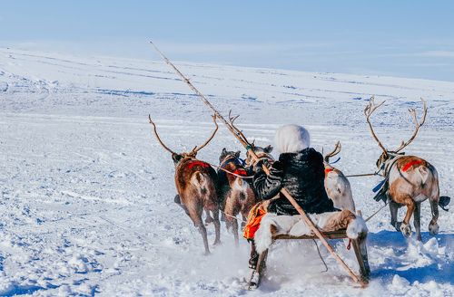 " на оленьих упряжках"