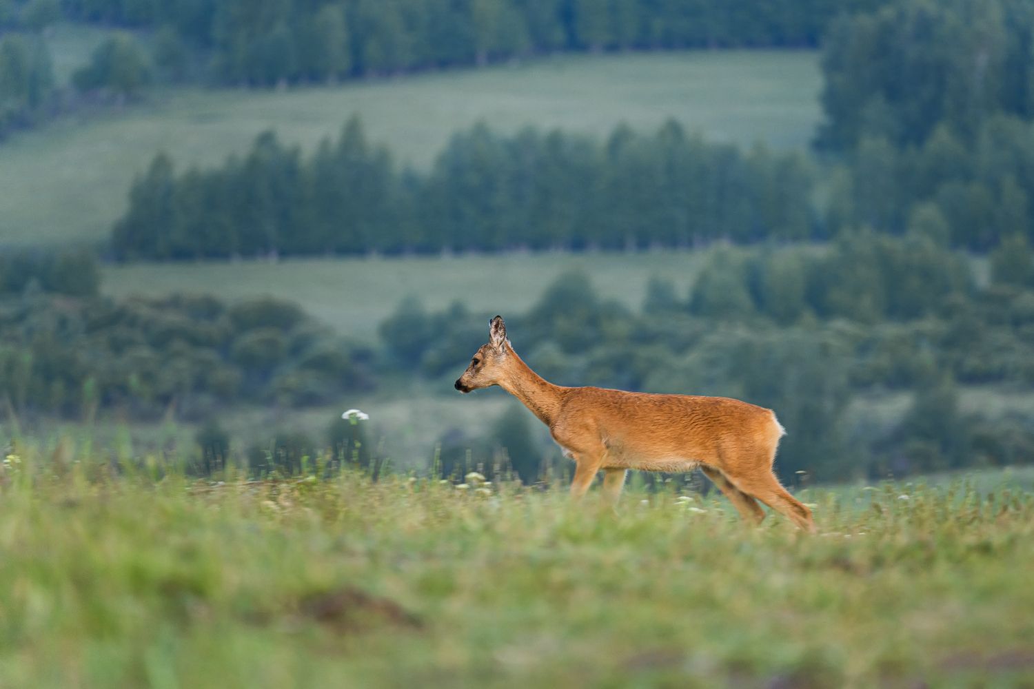 Сидел тихонько на вершине 2-го Сундука, снимал пейзаж. Думал пришел вчерашний рыжий пес. Ан нет... Косуля была сильно удивлена увидев мой автомобиль))) Из трех выстрелов, один более-менее получился. / Р. Хакасия, Орджоникидзевский район, Сундуки 12.06.2025/