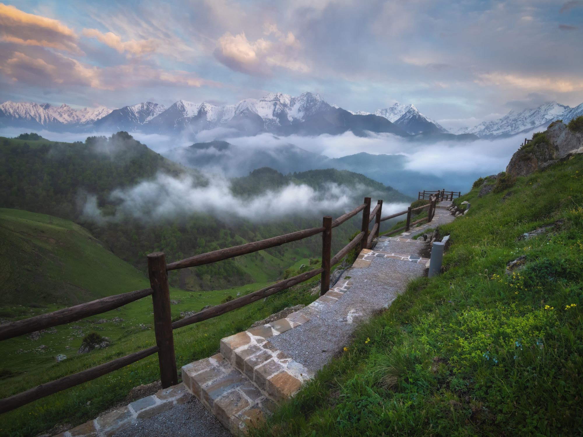 Често скажу, я большой противник облагораживания природных объектов! Многие со мной не согласятся, но я за первозданность! Есть многочисленные примеры, в том числе, в Дагестане, на Урале и Итурупе, когда такое вмешательство либо портит, либо вовсе убивает красоту места. Создание инфраструктуры, обустройство троп и т.п. - все это конечно необходимо и даже неизбежно в некоторых местах, но это ни в коем случае не должно вредить эстетическому облику самого природного объекта. Вот хорошим исключением является смотровая на Цей-Лоамсоком перевале в Ингушетии, здесь все выглядит вполне гармонично. К сожалению, таких примеров мало, а я все чаще становлюсь свидетелем противоположного.