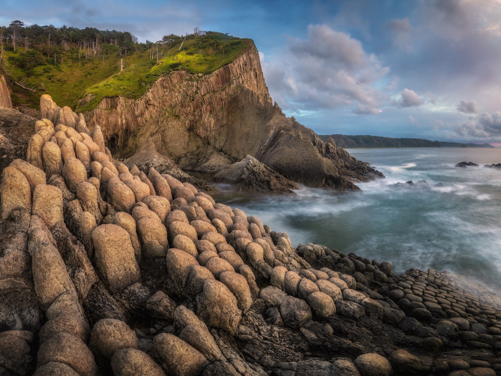 Найти гармоничную композицию на мысе Столбчатый непросто. Да и снять одним кадром мало что получается. Панорамы, в том числе и многорядные, этот вопрос решают )
