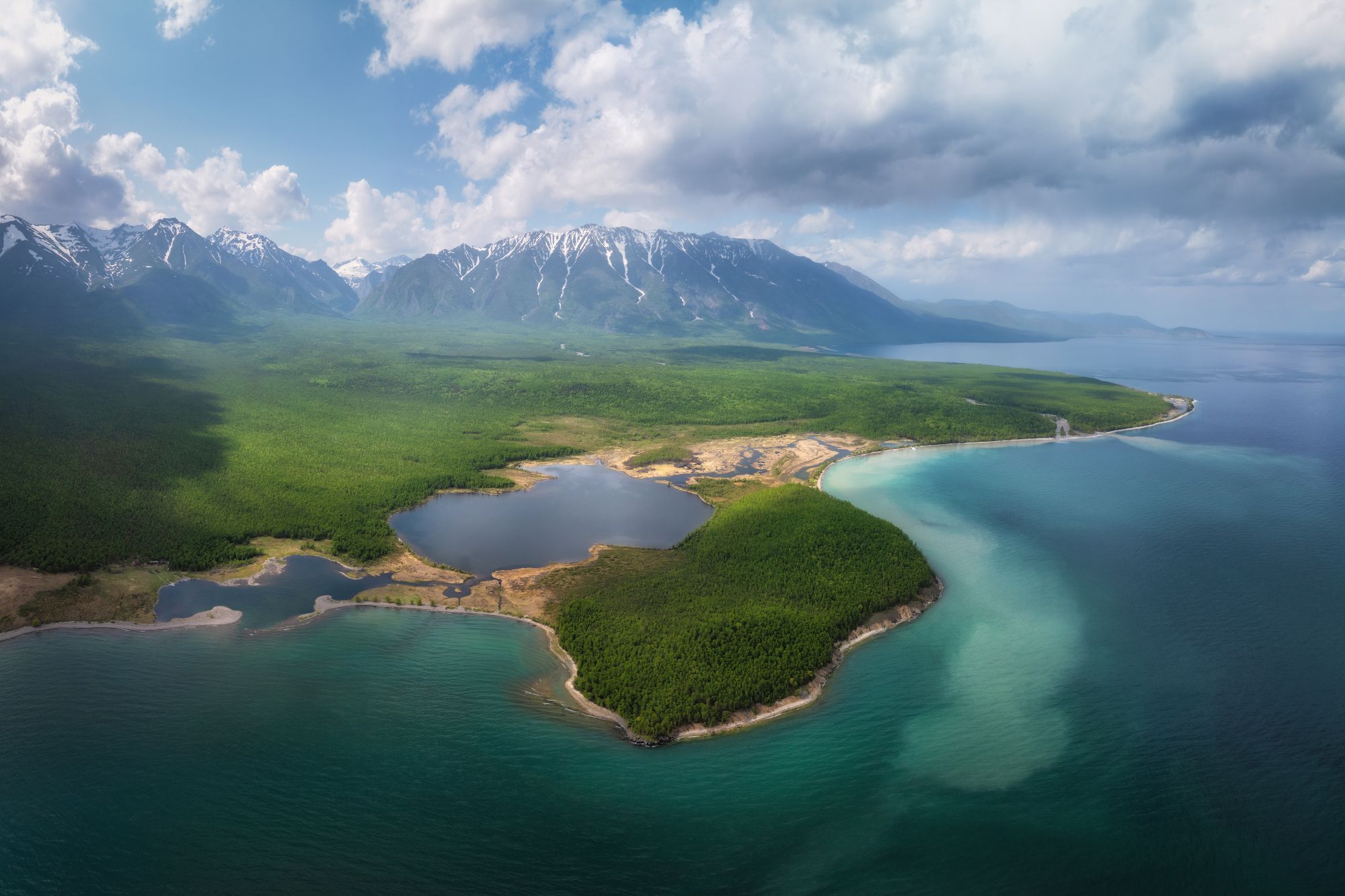 На Байкале даже мутная вода смотрится очень симпатично. Ну это только с большой высоты ) Мыс Коврижка, северный Байкал. Июнь 2025.