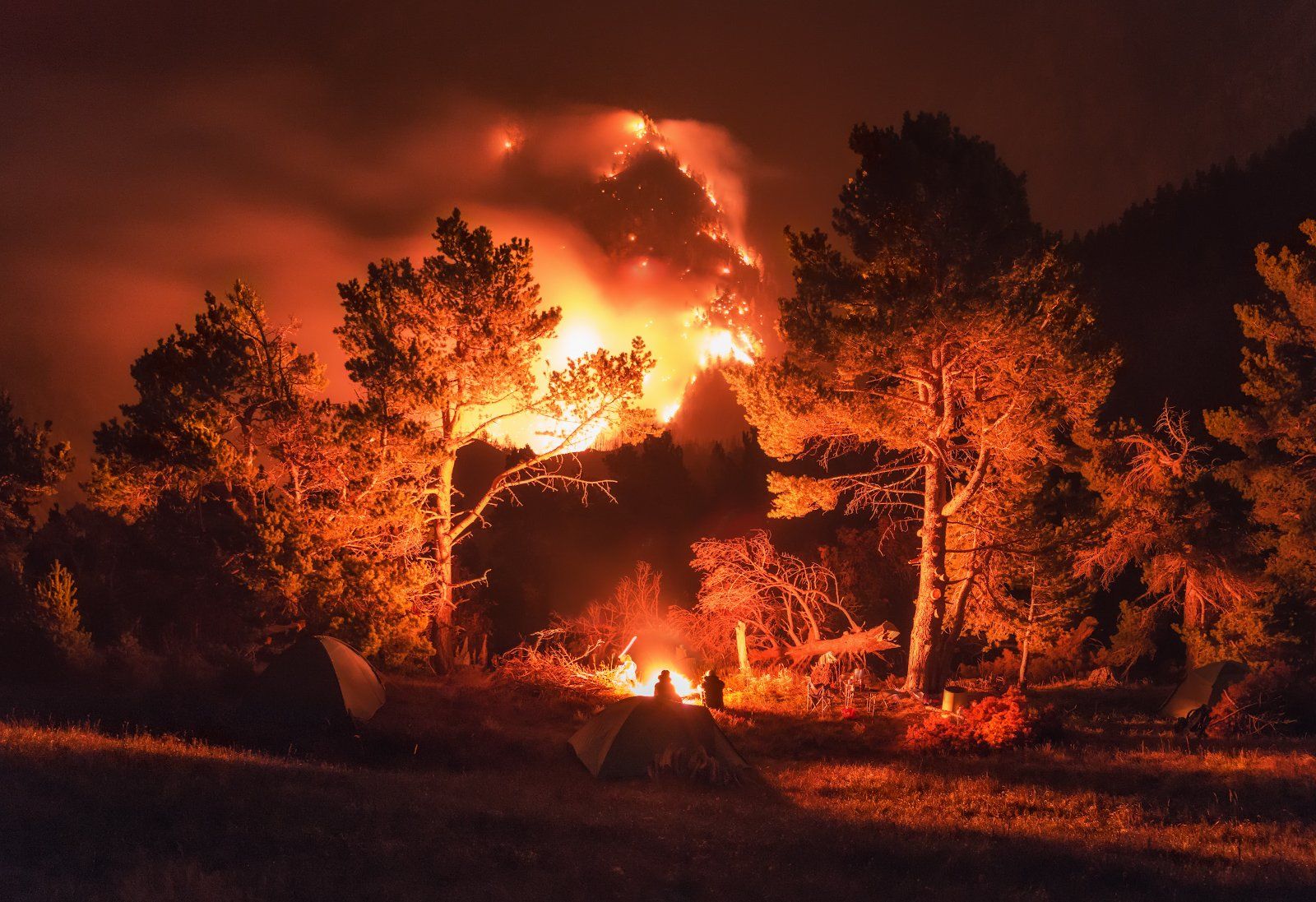 Наша экспедиция по Дагестану проходила по высокогорной части, совсем недалеко от грузинской границы. Разбив лагерь в одном месте, мы стали свидетелями небольшого лесного пожара. Днём был заметен только дым, а вот ночью все выглядело весьма апокалиптично. Цунтинский район октябрь 2018г.