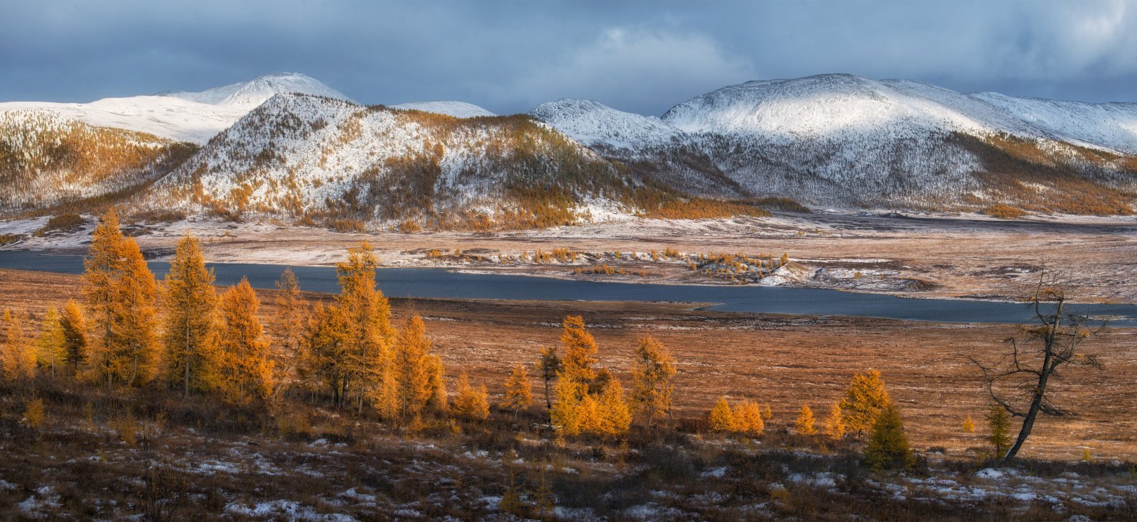 Это был первый день в Саянах. Наш путь лежал из поселка Монды в село Орлик (это около 150 км), вдоль монгольской границы. Но за световой день мы смогли проехать лишь 70 км. Нет, нет, дороги были вполне хорошие, неисправностей тоже не было! Зато был снег, солнце, золотые лиственницы и чумовые горные ландшафты! Каждые 3-5 км мы делали остановки, потому как проехать мимо такой красоты было бы настоящим преступлением! Солнце с нами словно играло в прятки, то скрывалось за тучи, то выглядывало, зажигая своими лучами золотые лиственницы! Озеро Ильчир (Окинский район, Республика Бурятия), сентябрь 2018.