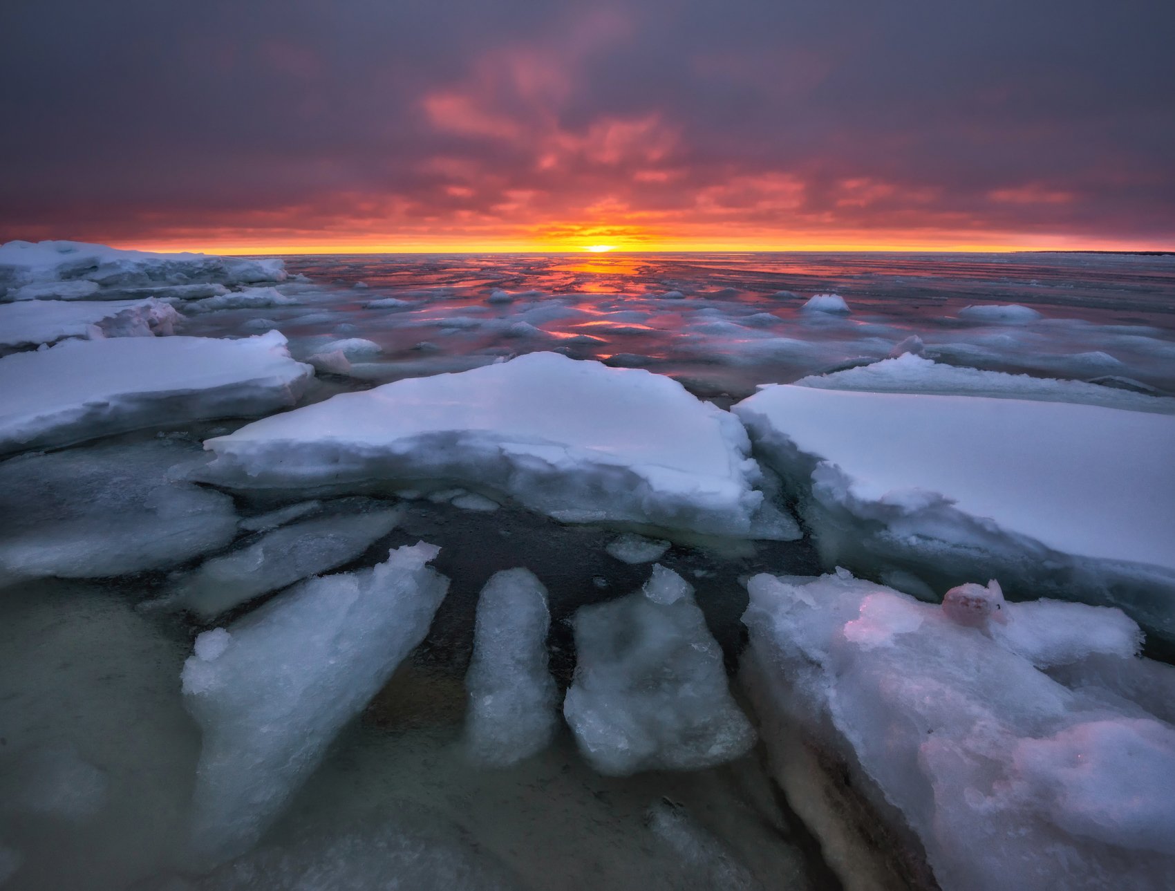 Заливы Белого моря зимой полностью замерзают, но всегда есть граница открытой воды и льда. В таких местах господствуют плавучие льды.
