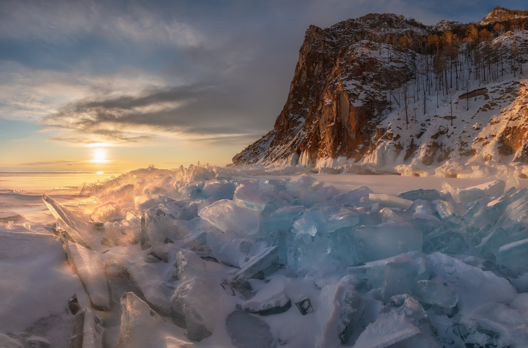 Окрестности п. Узуры, Байкал, январь 2020. (Nikon D800 + Nikkor 16-35F4 VR, F16, 1/200s, iso250, 16mm, панорама из 4-х вертикальных кадров).