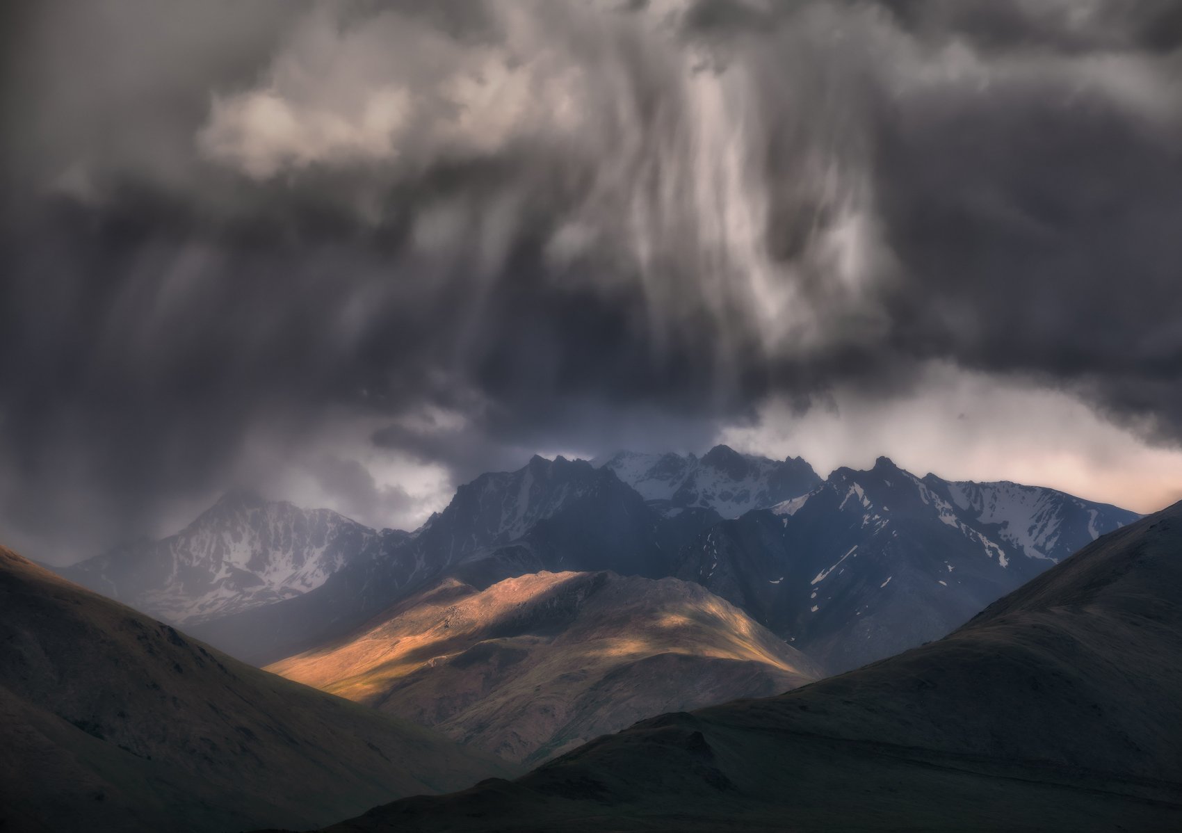 Непогода в горах Кавказа. Этот снимок сделал в природном парке «Приэльбрусье», с обочины дороги, ведущей к урочищу Джилы-Су (Кабардино-Балкария). Весь июнь прошлого года я провёл на Кавказе, и буквально каждый день где-то лило и громыхало!