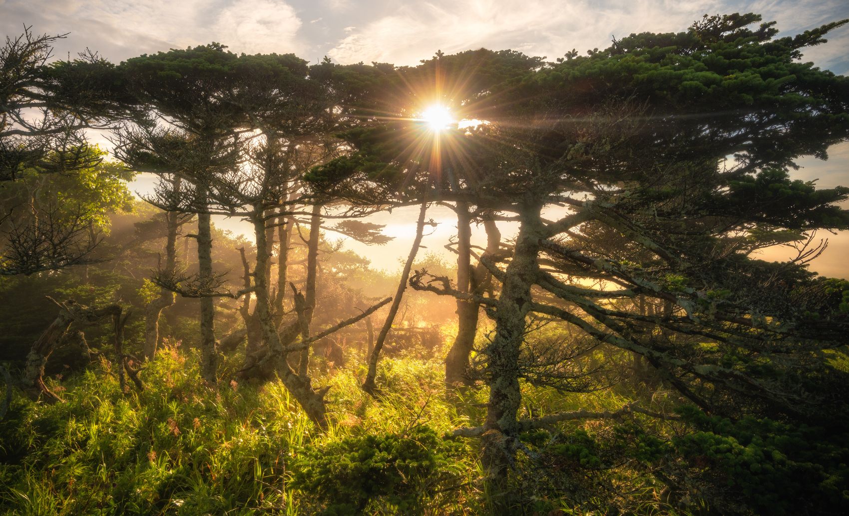 Удивительные формы деревьев на Южных Курилах не могут быть не замечены фотографами! А если ещё повезёт с лёгким туманчиком и солнышком, то лес выглядит просто сказочным!