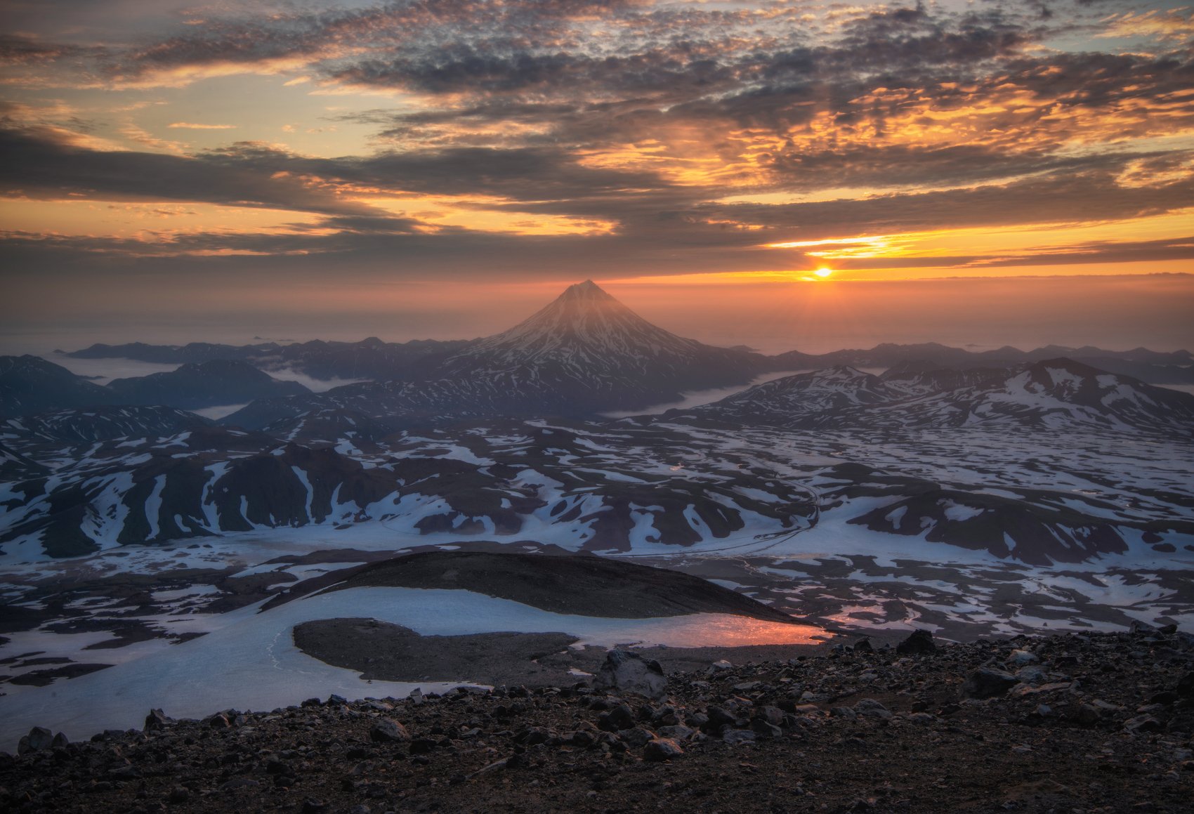 Так начинается новый день в нашей стране! Вид с кратера вулкана Горелый, на заднем плане Вилючинский вулкан. Чтобы встретить здесь рассвет, нужно начинать подъем посреди ночи. Но этого того стоит, если, конечно, повезет с погодой )))