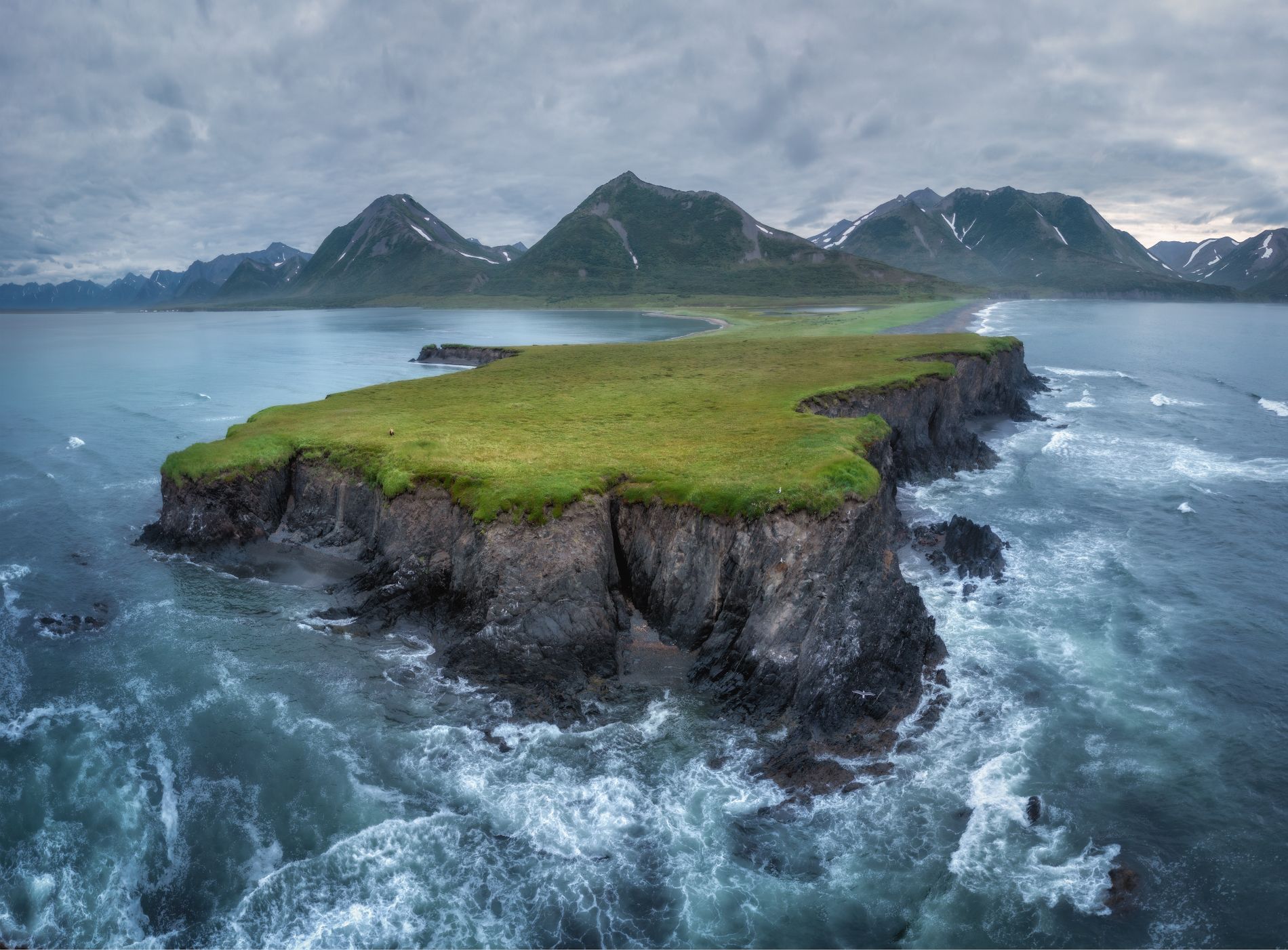 Бухта Анастасии - типичная по ландшафту бухта Корякии и южной Чукотки. Название бухта получила в честь дочери российского мореплавателя Фридольфа Гека, который подробно изучил бухту в ходе экспедиции в 1885 году. На старых картах здесь значится самое южное лежбище моржей. С помощью дрона я обследовал весь мыс в поисках моржей, но лежбища здесь не оказалось. Лишь в отдельных местах были обнаружены останки этих животных, что свидетельствует, скорее, о временных стоянках. Пока делал облет, решил сделать одну панораму. И вот, только спустя месяцы, когда руки дошли до ее склейки, я обнаружил на фотографии интересный объект - медведя! ))) Самое интересное, что во время съемки я его вообще не видел и даже не догадывался, что он там в 300 метрах от меня. А вы найдете его на снимке?