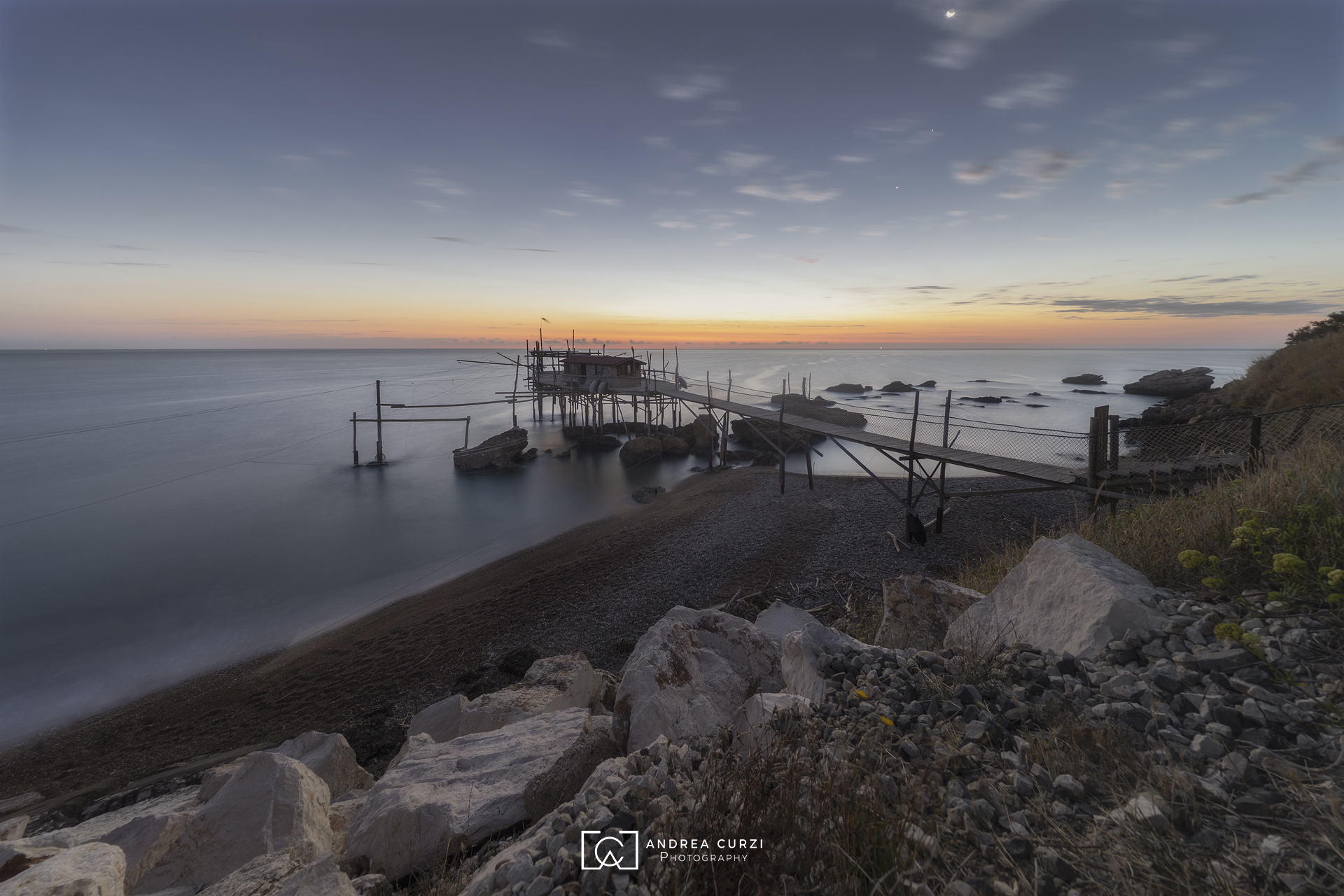 Solid long exposure. The water’s smoothness works well with the stillness of the structure and the rocky foreground. The horizon line is clean, and the color gradient in the sky—cool to warm—adds depth without being overdone. The composition leads the eye naturally from the rocks into the pier and out to the horizon. The pier’s diagonal adds direction, and the small building on it gives a sense of human presence without clutter.