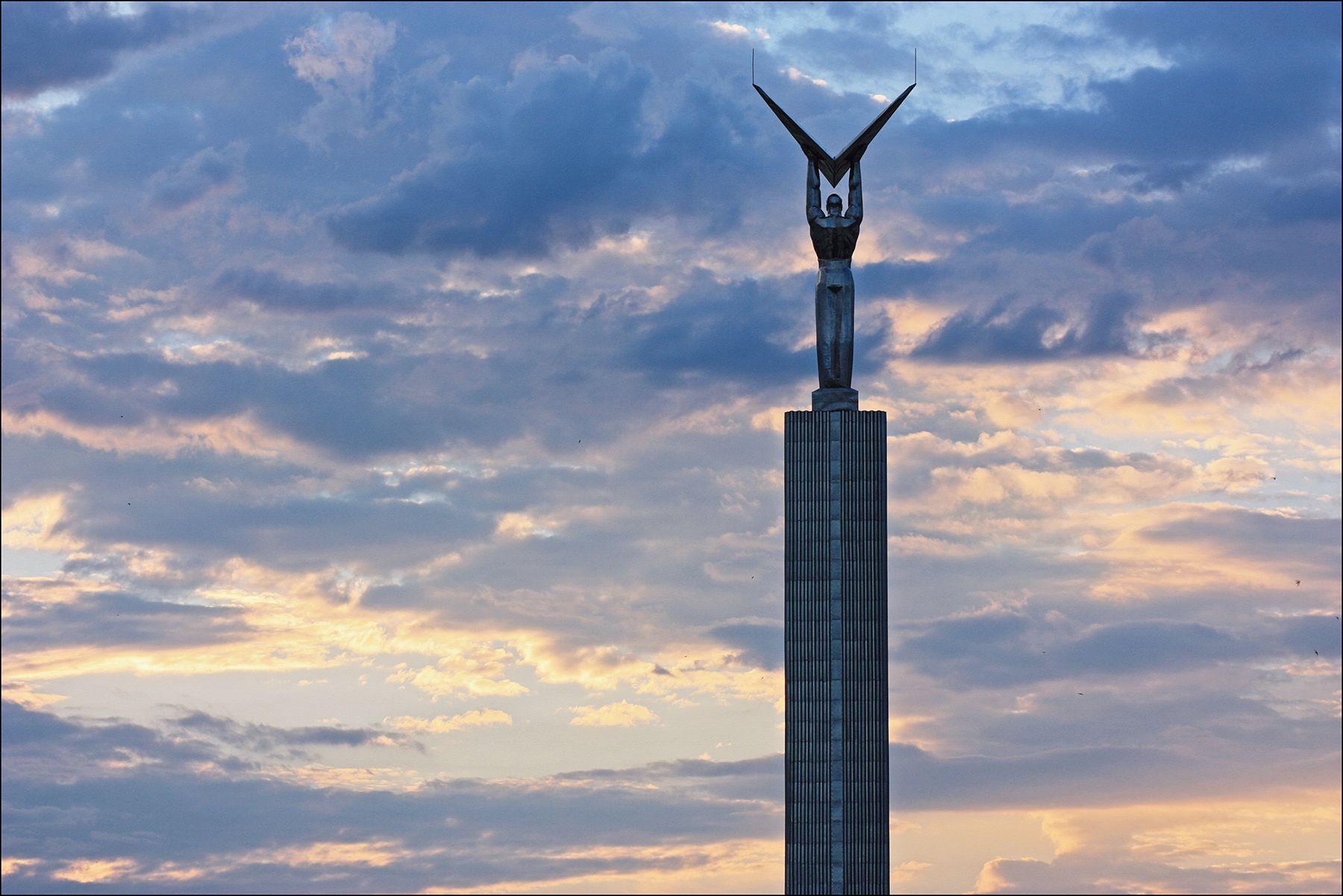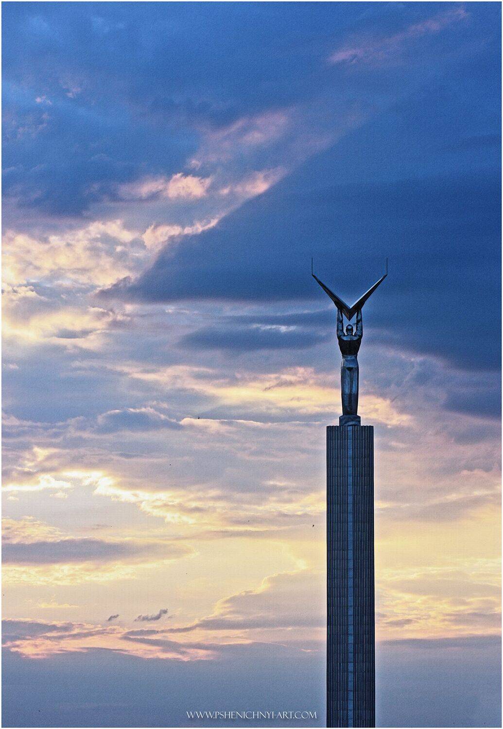 Монумент, возвышающийся над волжскими просторами, является символом развитой авиационной и космической промышленности города Самары.