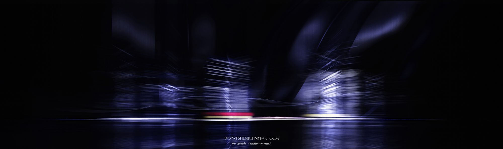 Работа выполнена на основе фотографий ночных городских огней, отраженных в воде. С помощью графического редактора они были преобразованы в трансформирующиеся структуры, напоминающие ночные образы архитектурных объектов.