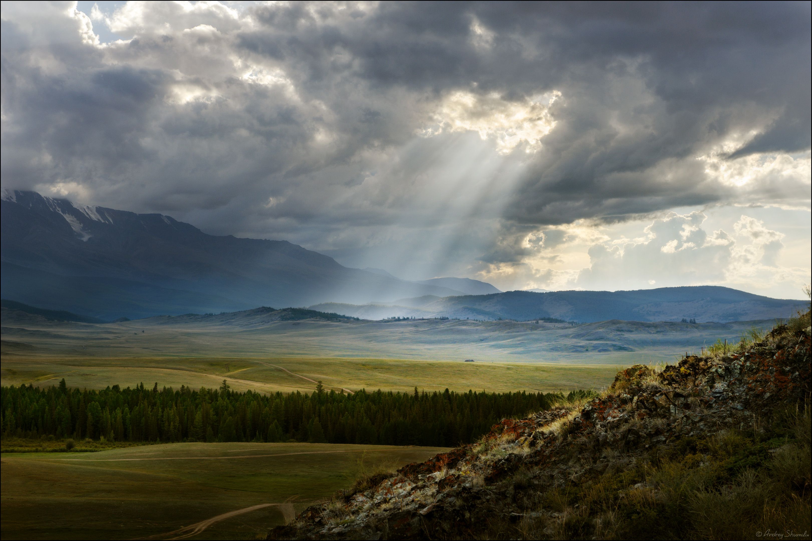 горный алтай, горы, курай, курайская степь, лучи, Андрей Шумилин